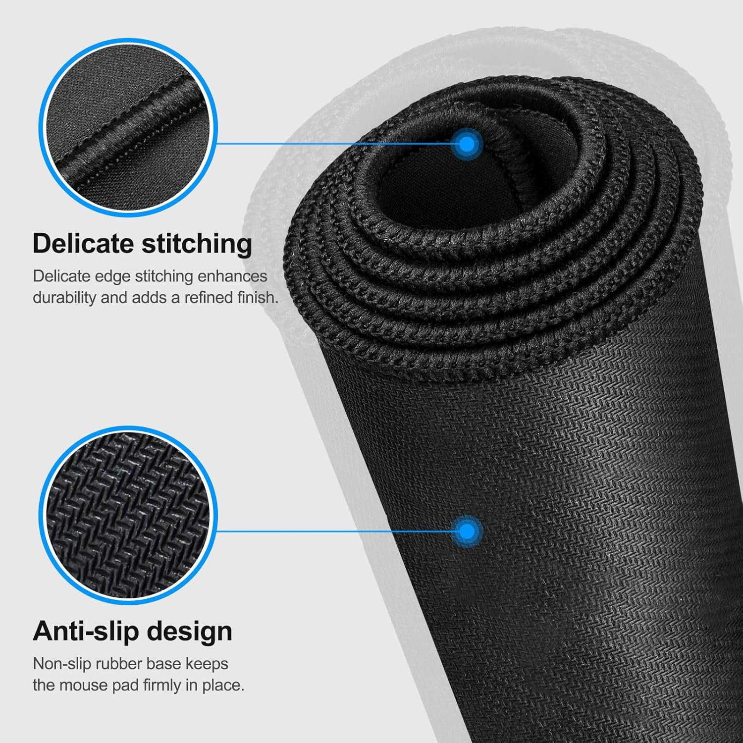 Durable Stitched Edges: The edges are stitched with anti-fray technology, avoiding wear and tear, ensuring the mouse pad remains in excellent condition over time.