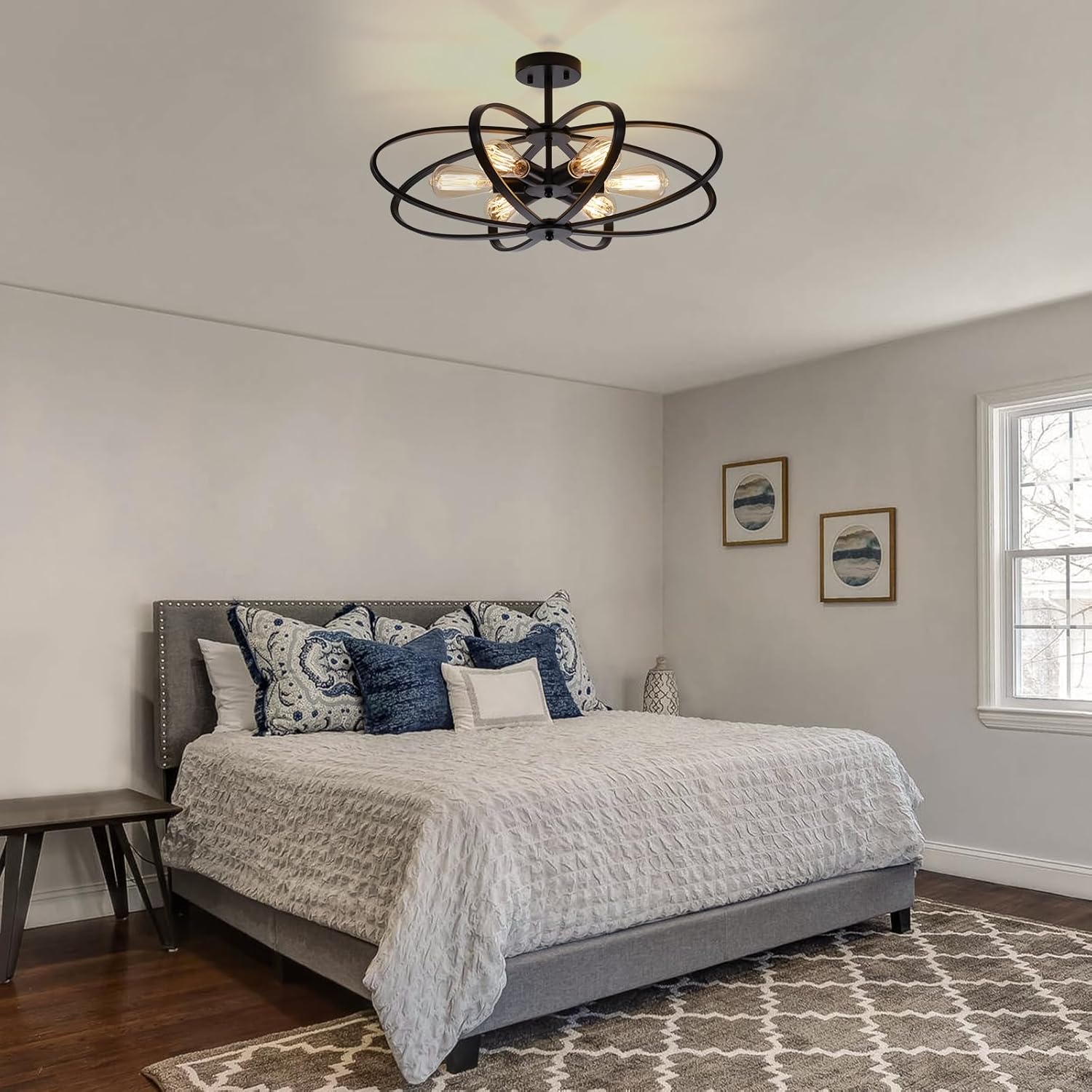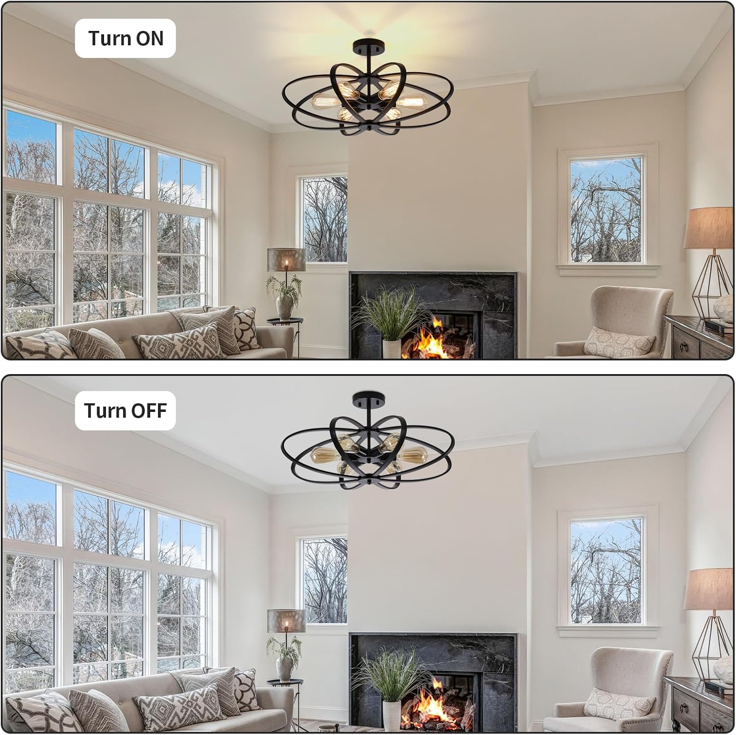 PERFECT SIZE and EASY TO INSTALL – Semi flush mount ceiling light fixture is 25.59″ in diameter and 13.38″ high.After a simple assembly and hard-wired installation, it can be used immediately