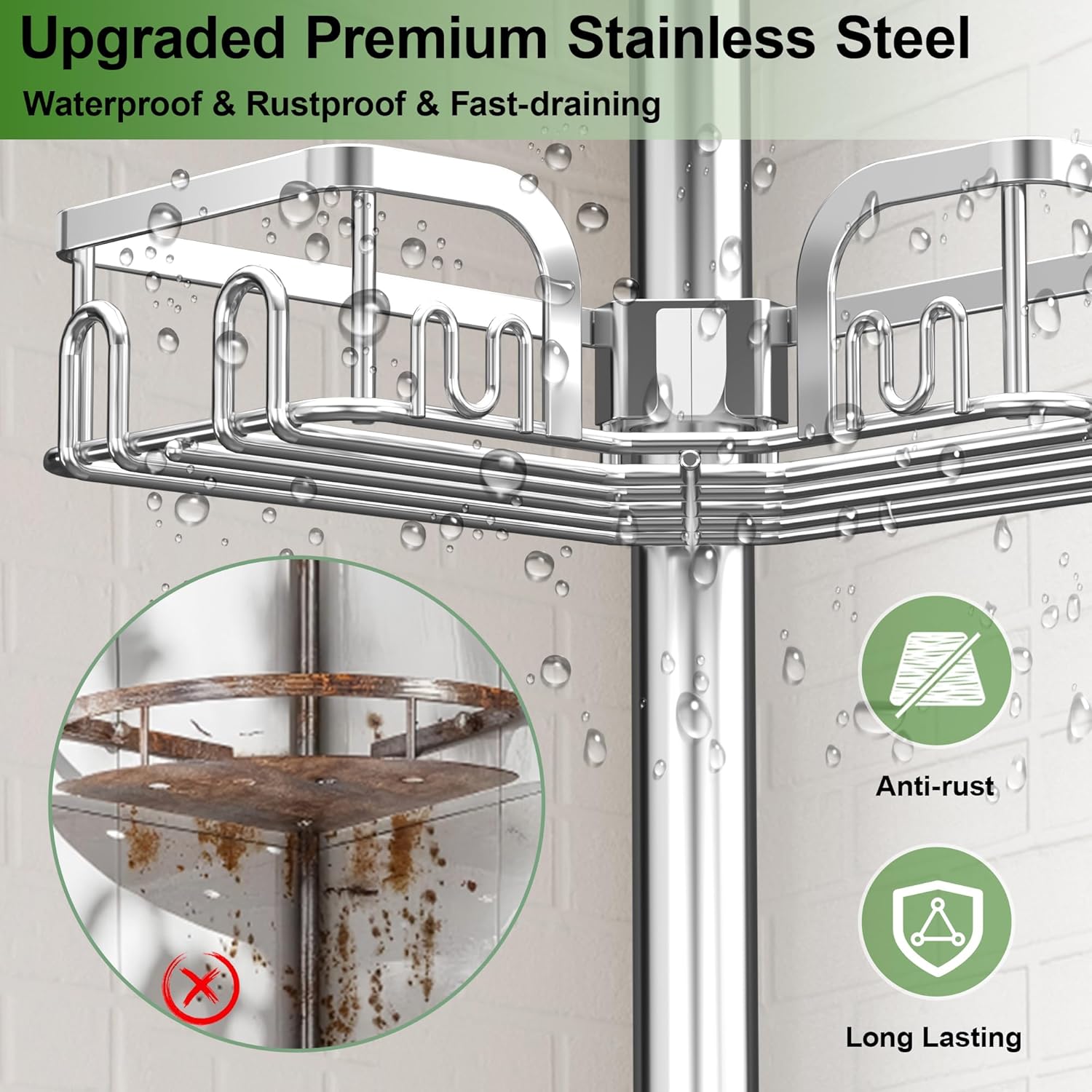 Premium Stainless Steel:Our shower caddy is made of premium stainless steel,durable,rustproof,waterproof,and scratch-proof,it is very suitable for humid conditions bathroom. A hollow design makes drainage more convenient and keep the shower area dry and clean