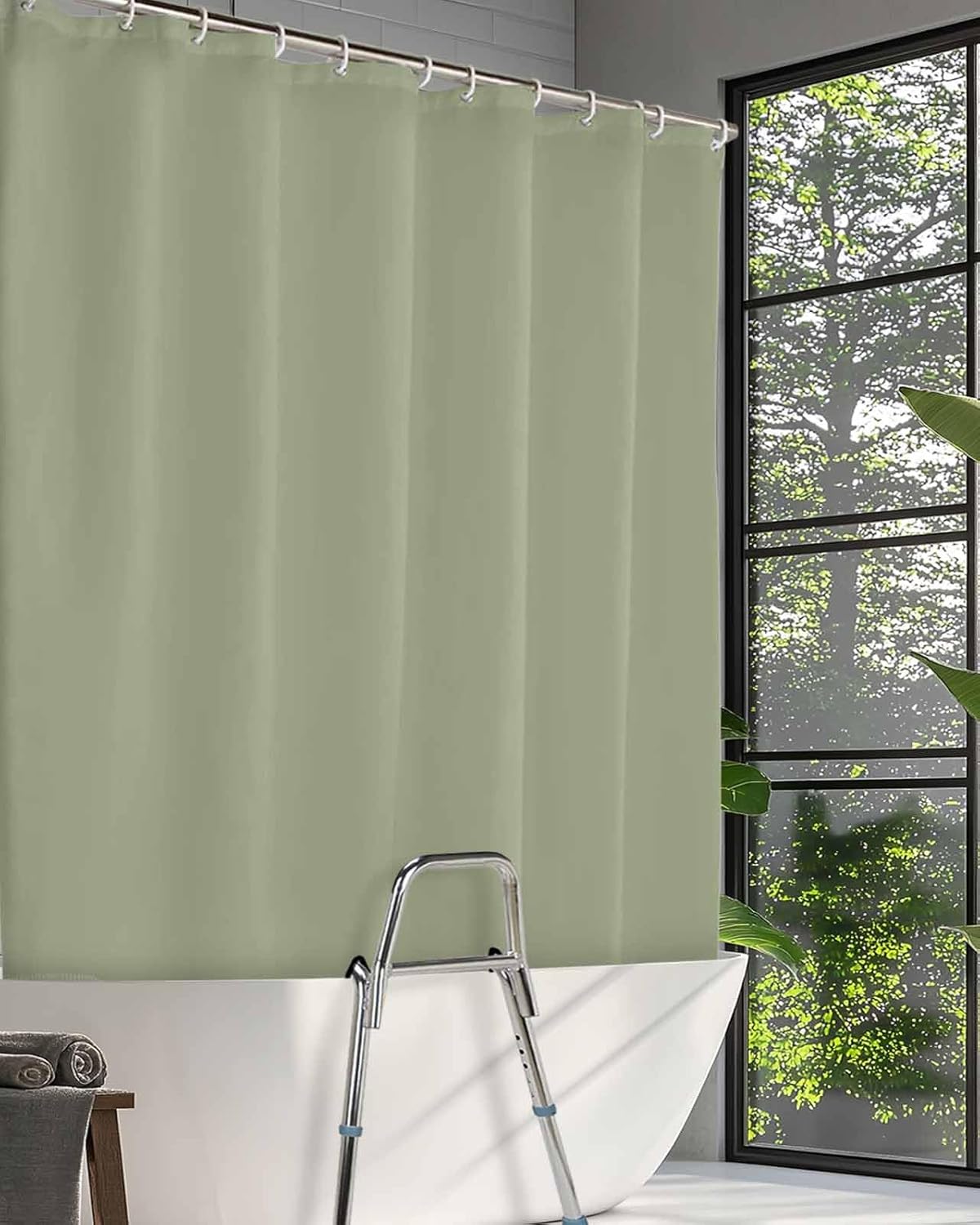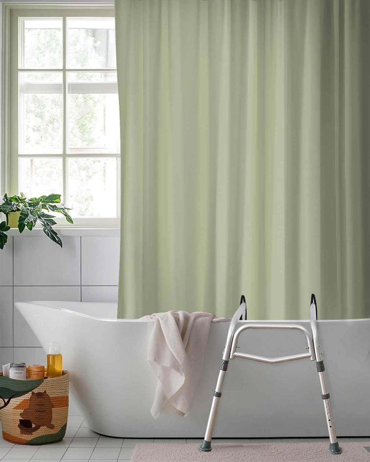 Shower Curtain for Tub Transfer Bench Sage Green Waterproof Split Shower Curtain with 2 Separated Away Slits Spring Green Solid Color Bathroom Curtains with 12 Hooks 72 x 72 Inch