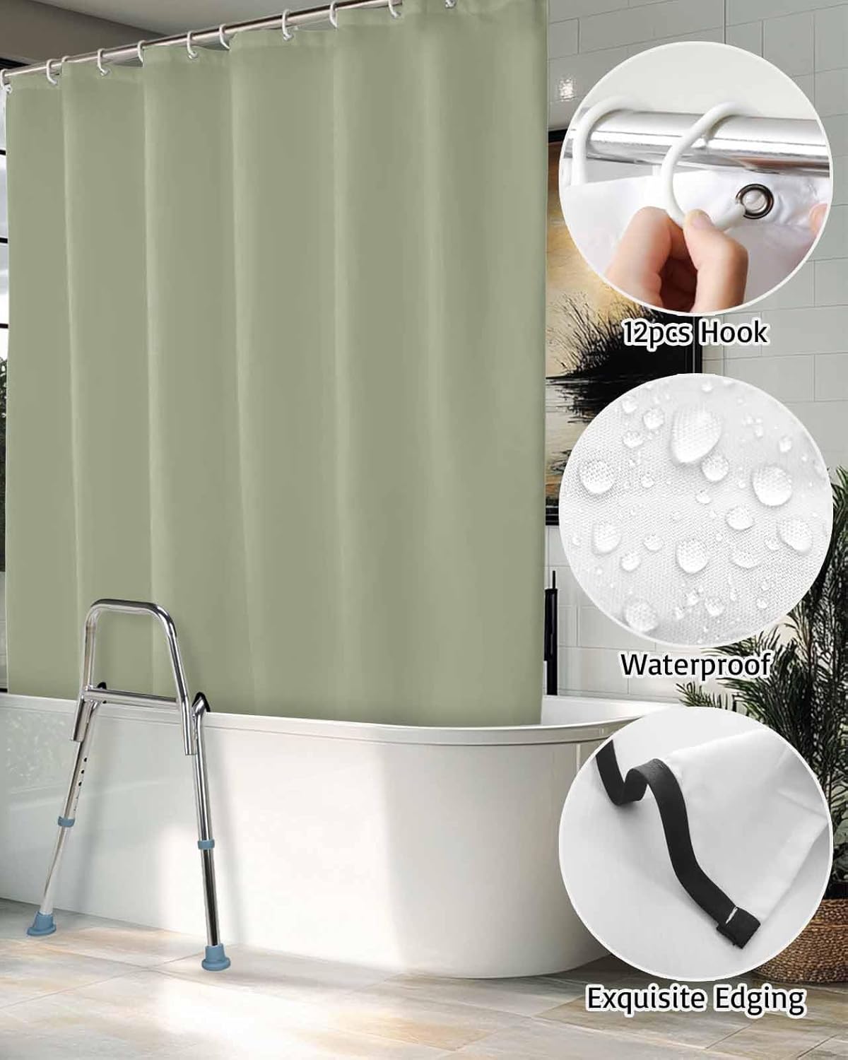 – Easy to Install: Each shower curtains come with included 12 plastic hooks for the affixing of the shower curtain to the rod.