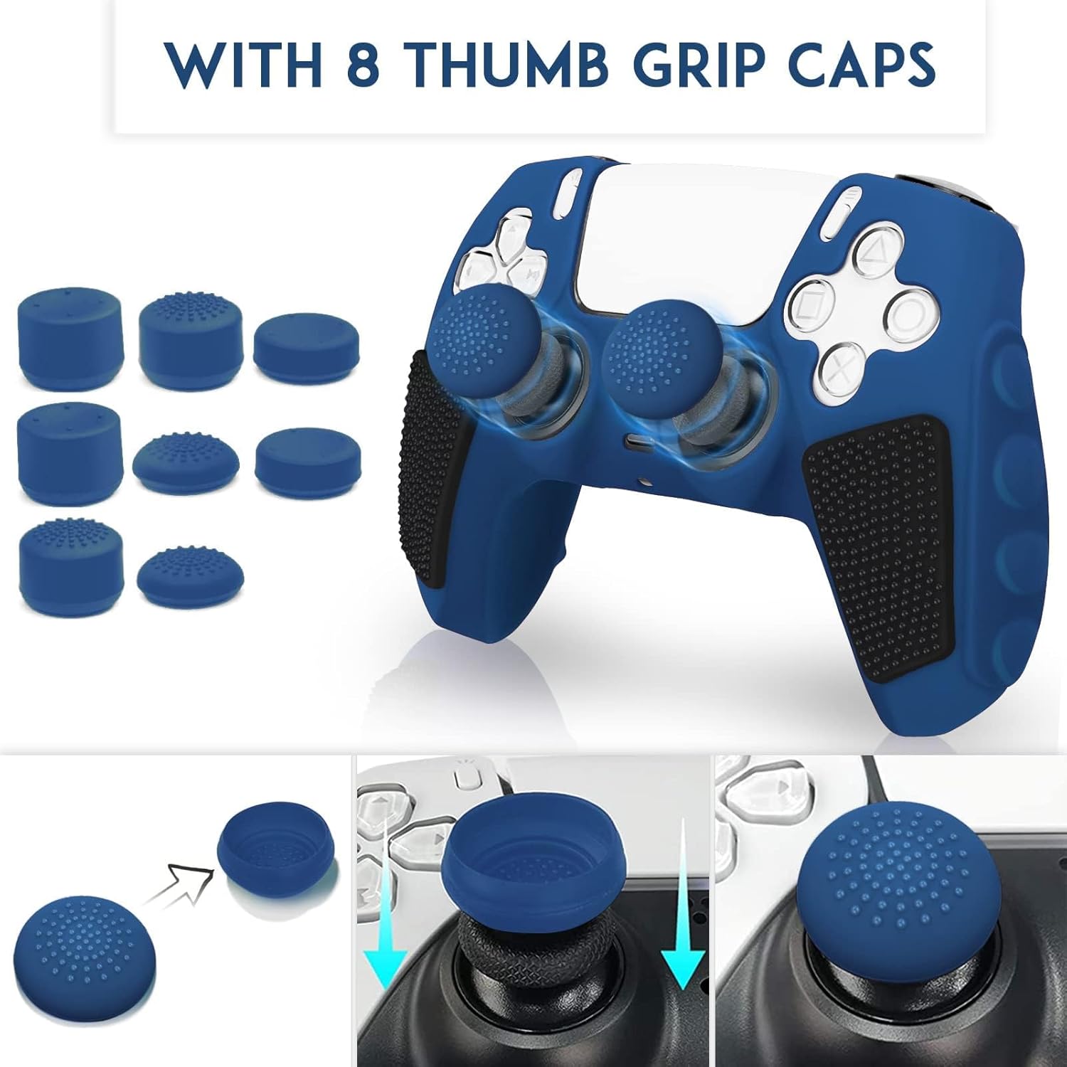 SIKEMAY Anti-Slip PS5 Controller Skin, Soft Thicken Non-Slip Studded Silicone Gel Grip Protective Cover Case for PlayStation 5 Controller Grip, 2 Pack with 8 x Thumb Grip Caps