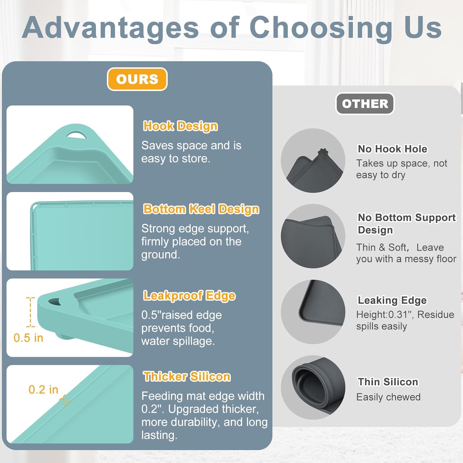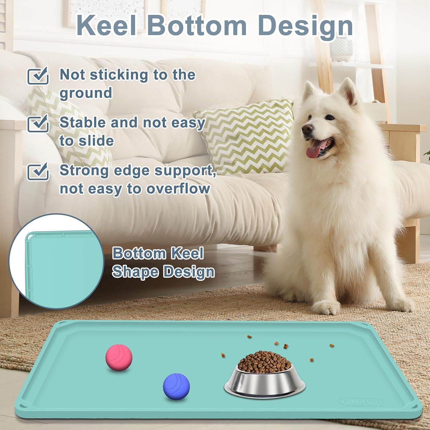 【 High Edge Design 】Equipped with a 0.5 inches high edge, this silicone mat for dog cat effectively prevents food and water spills, keeping your floor clean and tidy.