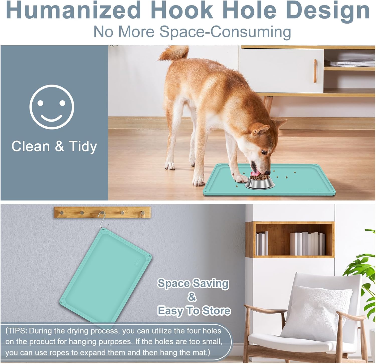 【 Anti-Slip & Floor Protection 】Designed with anti-slip, the dog water mat stays in place, even with the most rambunctious eaters. It also acts as a protective layer between your pet’s food/water and your floor, minimizing floor damages.