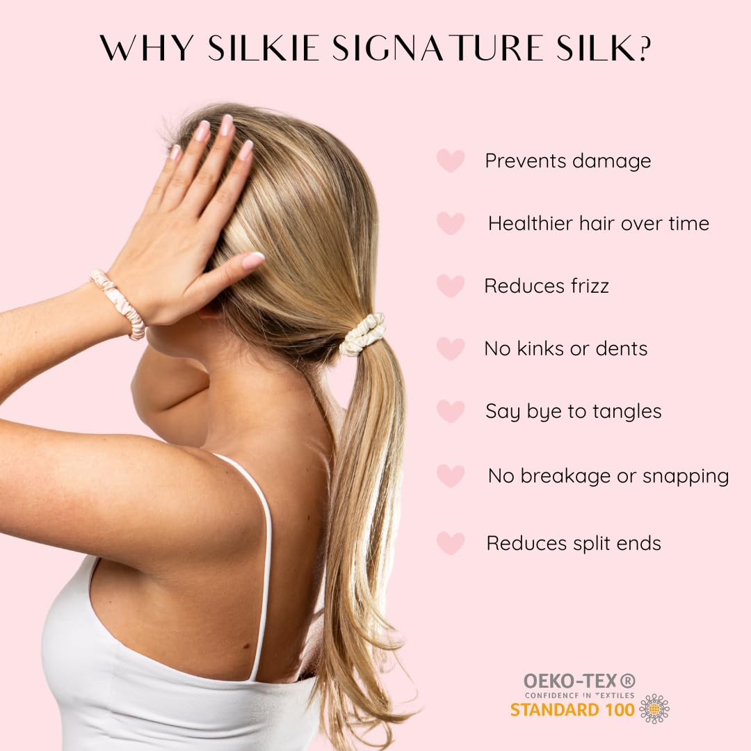 100% MULBERRY SILK – Formulated with the highest quality silk, Silkie scrunchies glide through the hair, protecting it from split ends and causing no damage. Tie your hair in a bun at night with a Silkie scrunchie to prevent friction, tangles and damage overnight. The smooth surface of Silkie scrunchies prevent hair being caught and snagged, unlike cheaper elastic hair ties