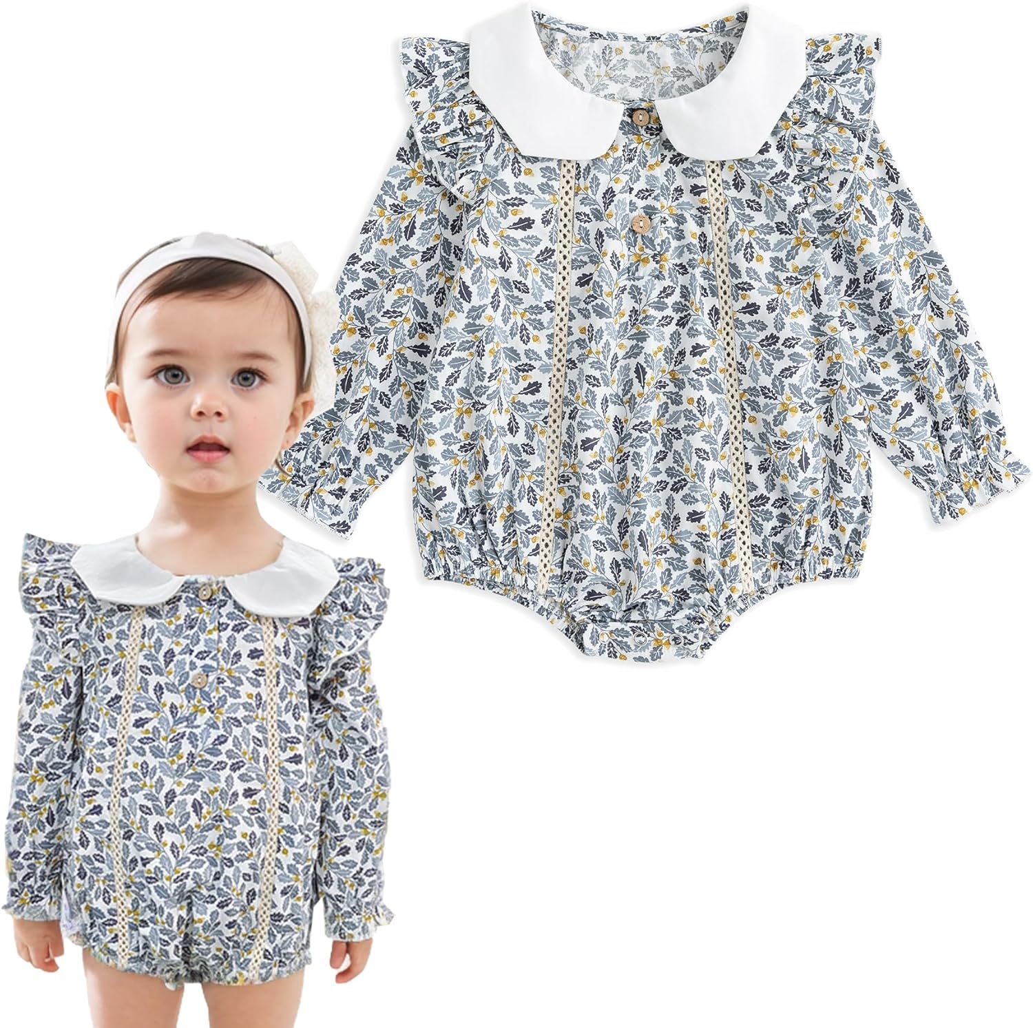 Simplee kids Baby Girl Romper Floral Long Sleeve Ruffle Romper Bodysuit Summer Spring Outfits