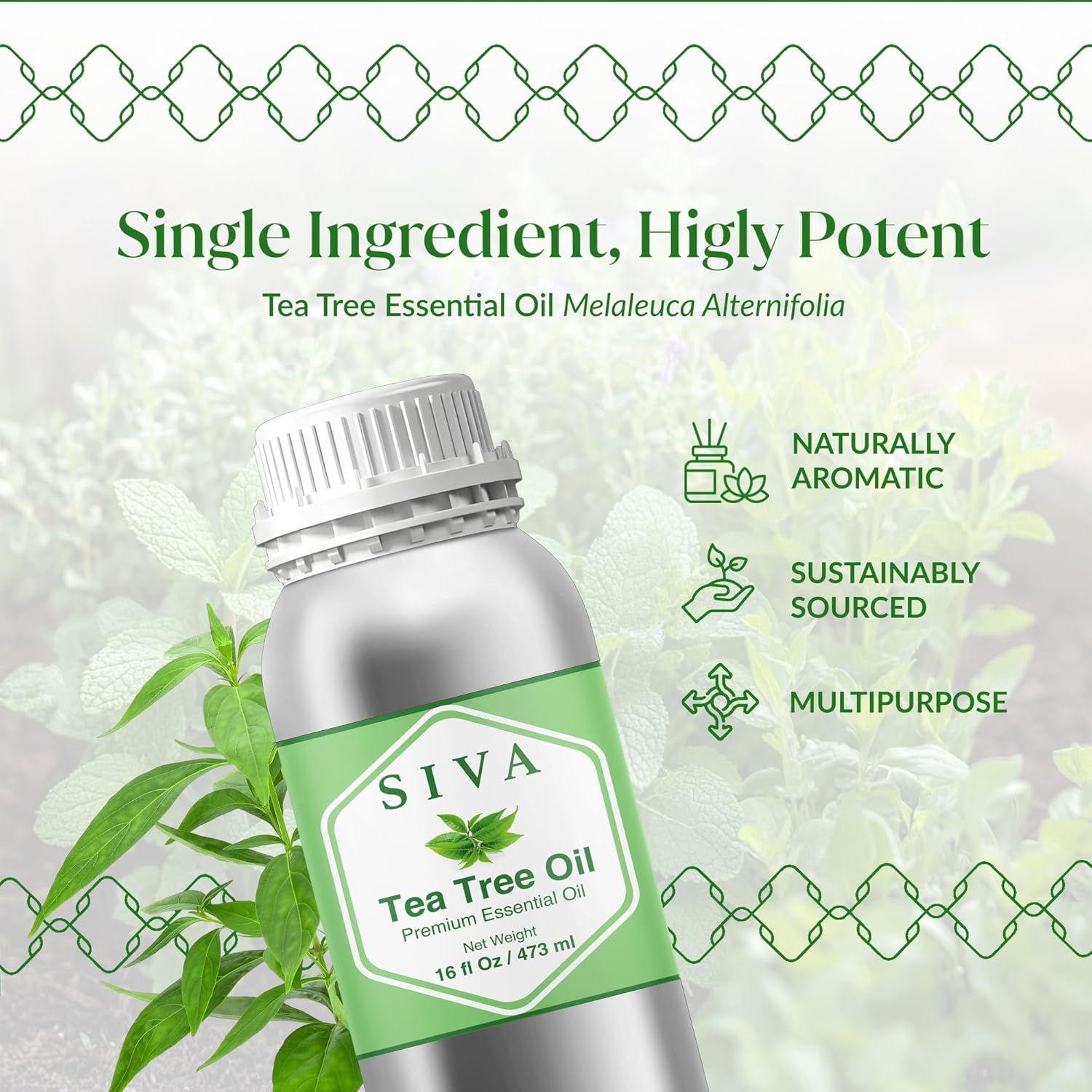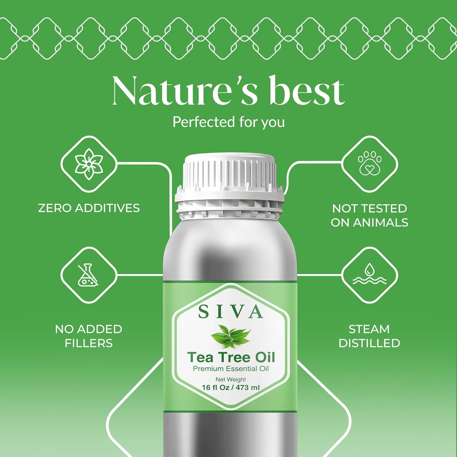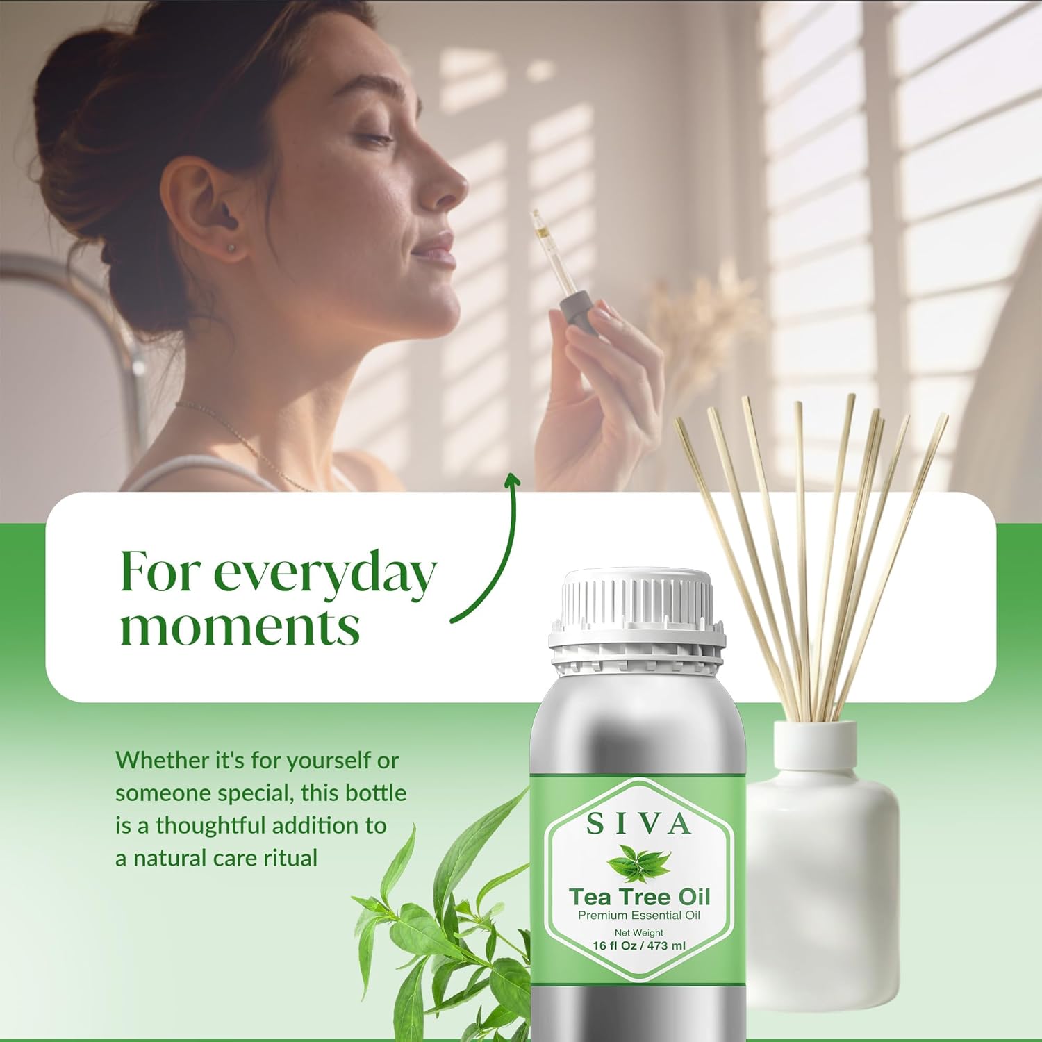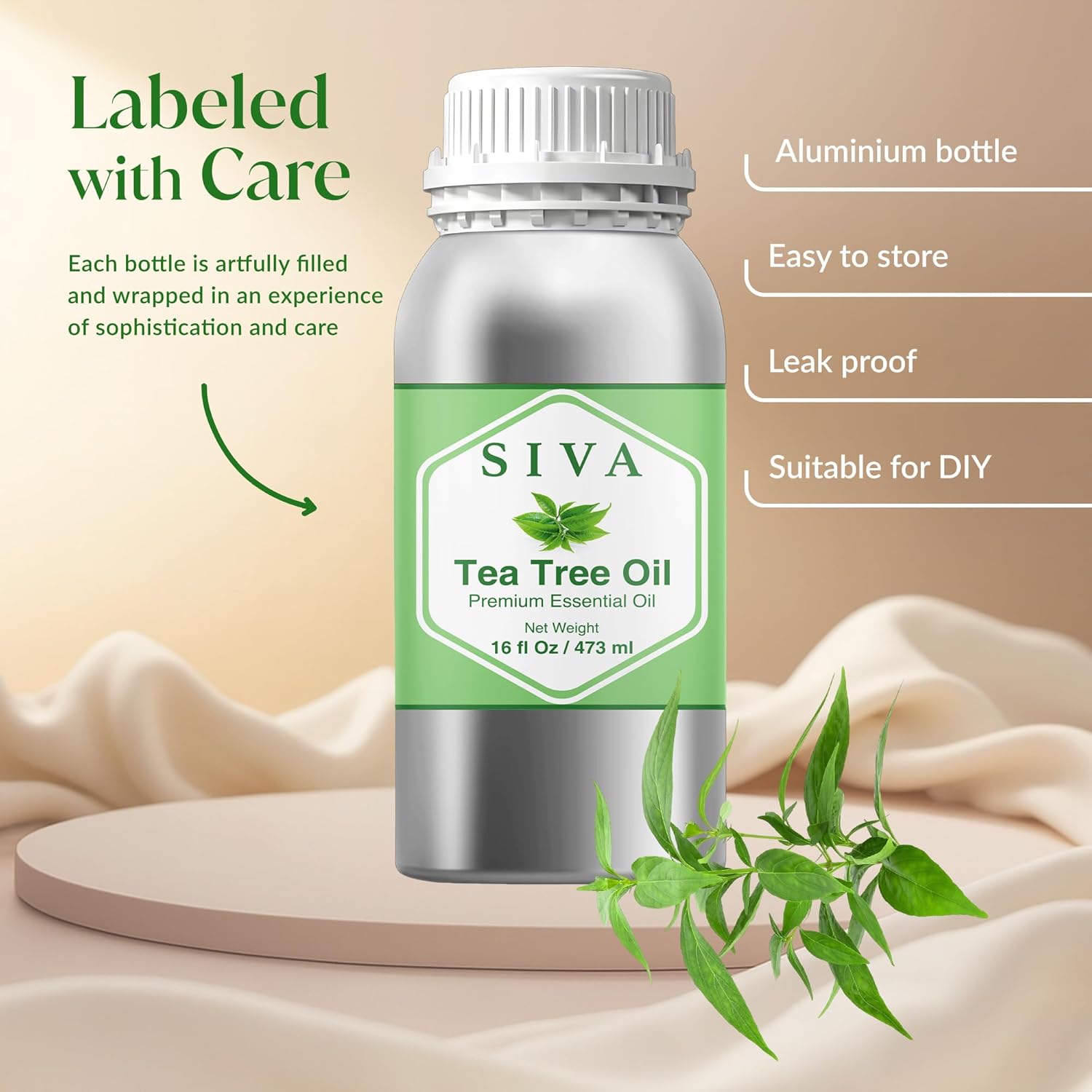 Siva Tea Tree Essential Oil – 16 Fl Oz – 100% Natural Tea Tree Oil – for Diffuser, Face, Skin Care, Aromatherapy, Hair Care, Scalp and Body Massage