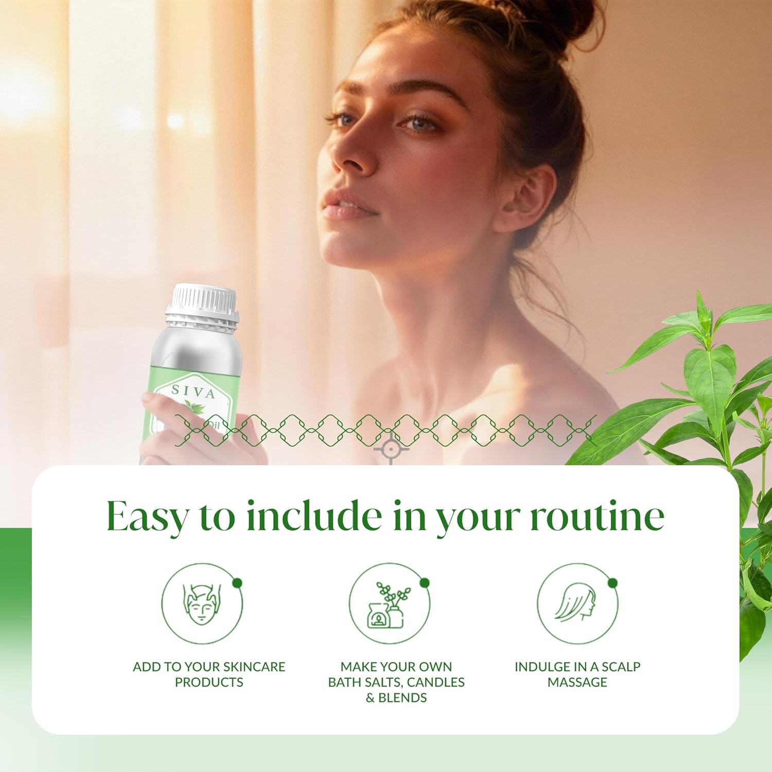 Hair Care: SIVA Tea Tree Oil is widely used for hair and scalp massage. Always dilute with suitable carrier oil before use since it is highly concentrated. For your hair care routine, simply mix a few drops of Tea Tree essential oil for hair with your shampoo, conditioner, and mask and use it regularly. You can use it a few times weekly for a scalp massage after proper dilution with carrier oil.