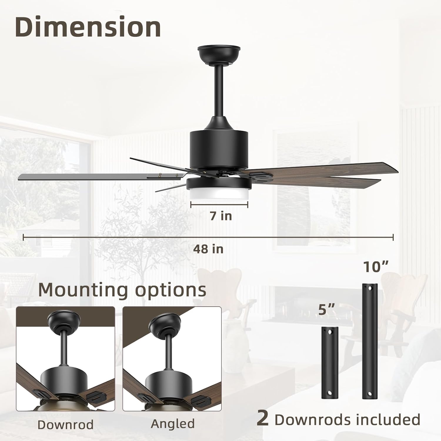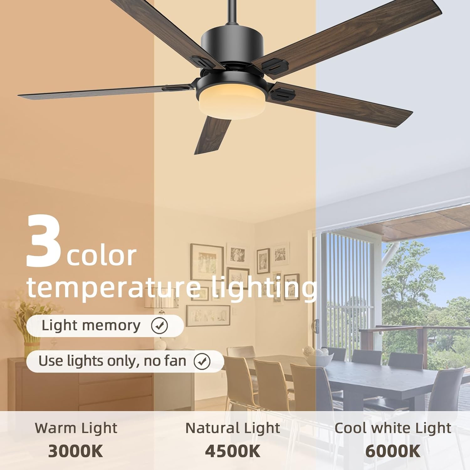 Modern Ceiling Fan with Lights: Black and brown ceiling fan with light featuring a sleek combination of black and natural wood finish blades, blending effortlessly with any contemporary decor scheme, perfect for enhancing the ambiance of dining rooms, bedrooms, living rooms, home offices, and more