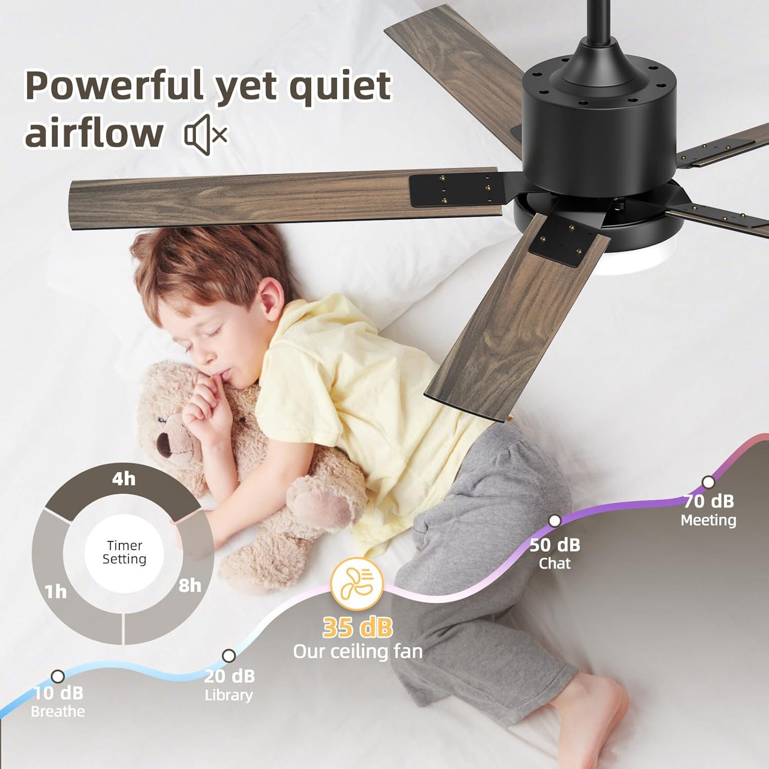 Ceiling Fans with APP Remote: Effortlessly adjust your ceiling fan settings using either the included remote control or your smartphone via the dedicated app, ensuring ultimate convenience and flexibility in managing your fan’s operation from anywhere in the room