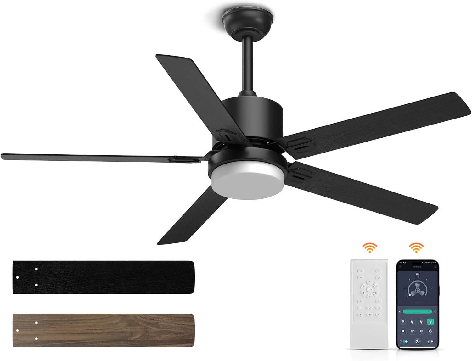 Sky sea Ceiling Fan with Light: Low Profile Black Ceiling Fan with Light and Remote/APP Control Reversible Dimmable Flush Mount Modern for Bedroom Livingroom Indoor Outdoor Patio 52 Inch