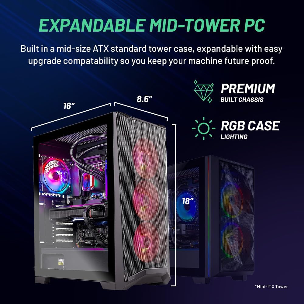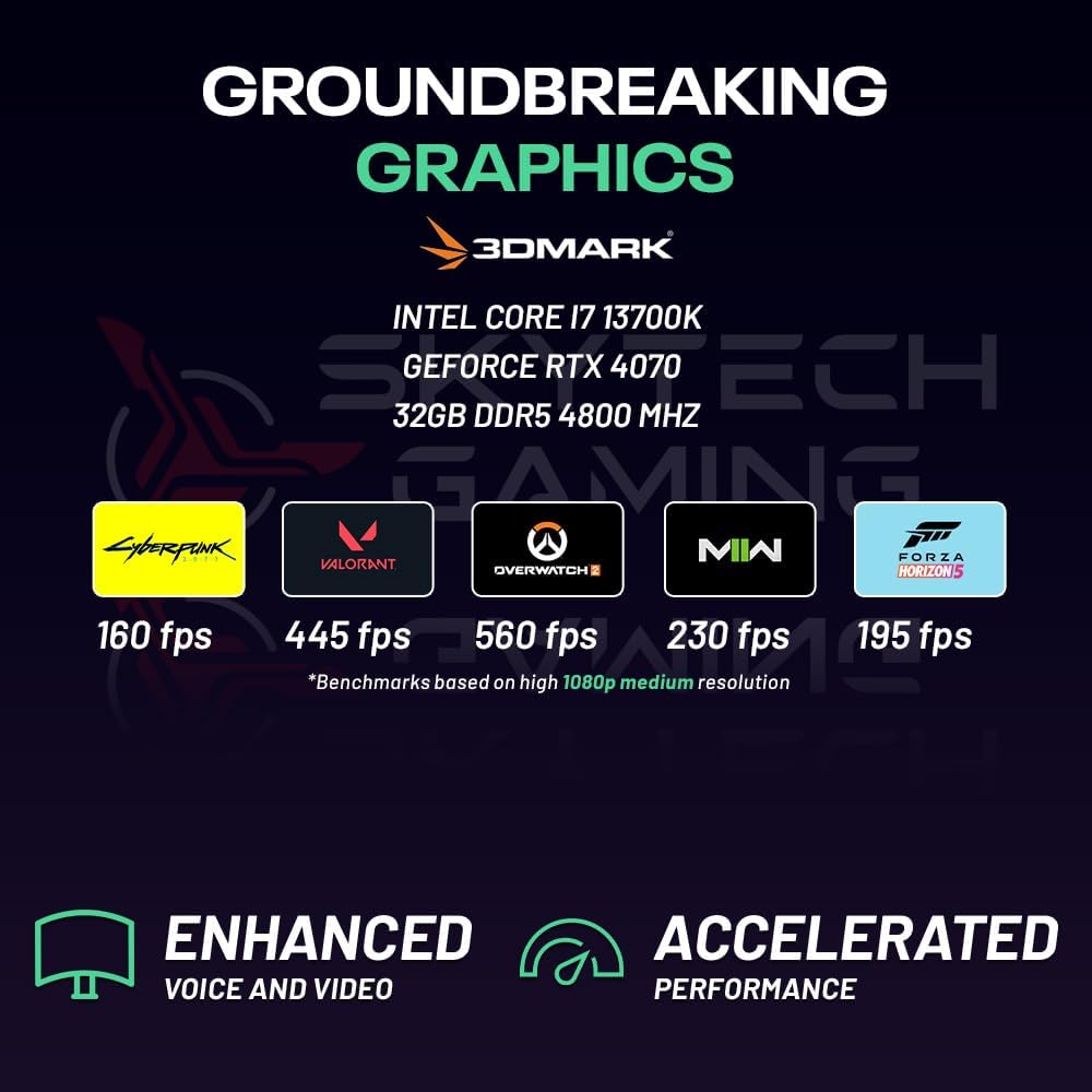 Every PC we offer is meticulously crafted with top-tier components and is supported by a comprehensive warranty, assuring you of a premium product. The Skytech Chronos is a top-tier gaming computer of the latest generation, designed to effortlessly handle popular games such as Call of Duty, Fortnite, Escape from Tarkov, Grand Theft Auto VI, Valorant, World of Warcraft, League of Legends, Apex Legends, PLAYERUNKNOWN’s Battlegrounds, Overwatch 2, Counter-Strike 2, Battlefield V, Minecraft, ELDEN RING Shadow of the Erdtree, Rocket League, Baldur’s Gate 3, Dota 2, HELLDIVERS 2, Monster Hunter, Terraria, Rainbow Six Siege, Dragon’s Dogma 2, Civilization VII, Dragon Age and more at Ultra settings. It delivers stunning 1440p Quad HD resolution with smooth gameplay exceeding 60 FPS.