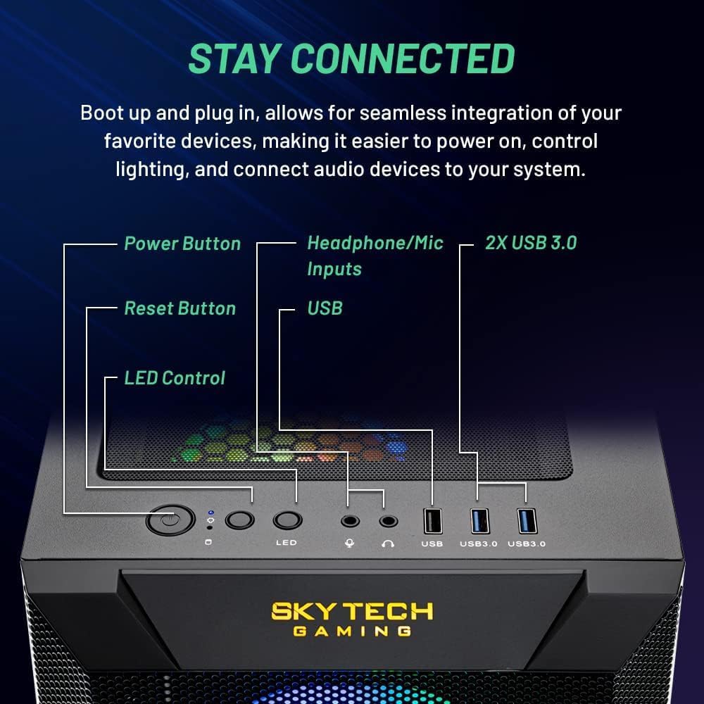 4 RGB Fans for Maximum Air Flow | Skytech Chronos II Case Black Edition with Front Mesh | 1 Year Warranty on Parts and Labor | Lifetime Free Technical Support | Assembled in the USA