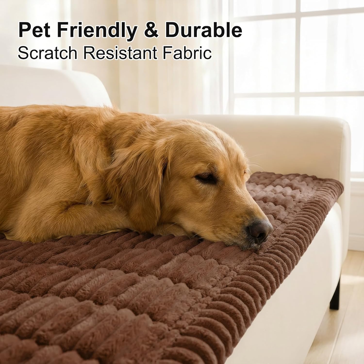 Smiry Couch Cover for Dogs Washable, Non Slip Fuzzy Pet Couch Covers for 3 Cushion Sofa Pet Friendly, Thick Soft Sofa Slipcovers Cushion Protector (Brown, 27.6″ x 82.7″)