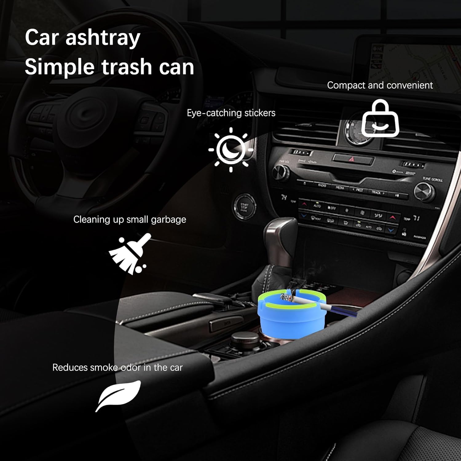☛ [Usage Suggestion]- We suggest that you can add a small amount of water to the bottom of the ashtray, which can be more effective in keeping safety, preventing smoke from spreading, preventing bad smell, and bringing a better journey experience for you and your family.