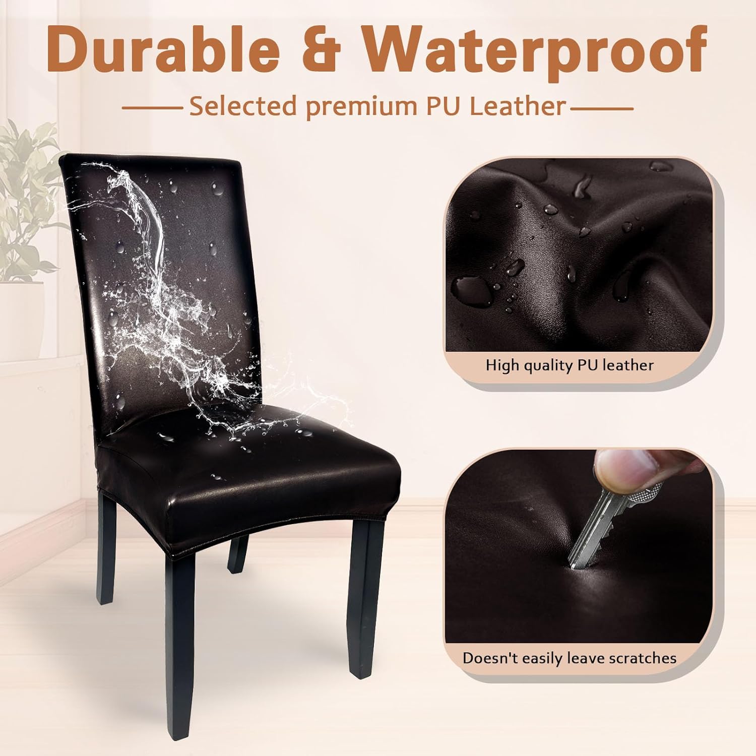Full Protection: Lufyzora waterproof leather dining chair cover are both waterproof and durable, effectively safeguarding your chairs against dirt, dusts, food scraps, pet scratching that might occur during daily use. Waterproof dining room chair covers keeping your chairs looking clean and fresh at all times, bring you a comfortable using experience
