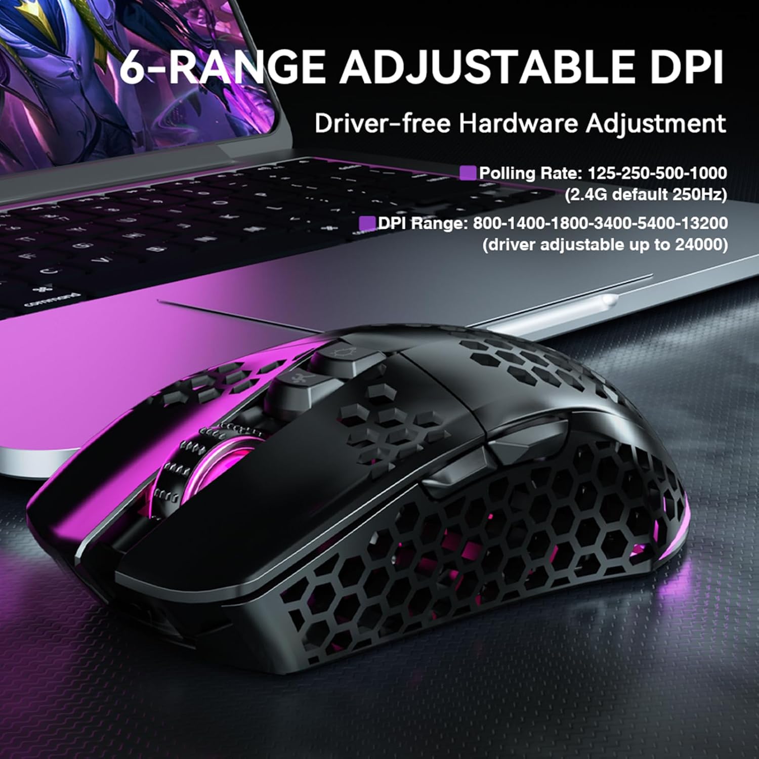 Lightweight and Honeycomb Shell:SM600 honeycomb mouse made of high quality.ABS material and designed with ergonomic hollow shell,Ergonomic Design reduce the weight and make the mouse more flexible and easier to be used for a long time without fatigue,and also enhance the heat dissipation features very comfortable to use.