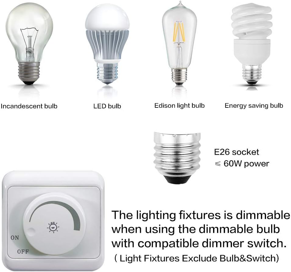 2.【BROAD ADAPTABILITY】Compatible with Incandescent, LED, CFL, and Halogen Bulbs(Bulbs exclude in package,maximum 60 watts for each light socket). Perfect fit in retro-vintage or modern styles decorates.