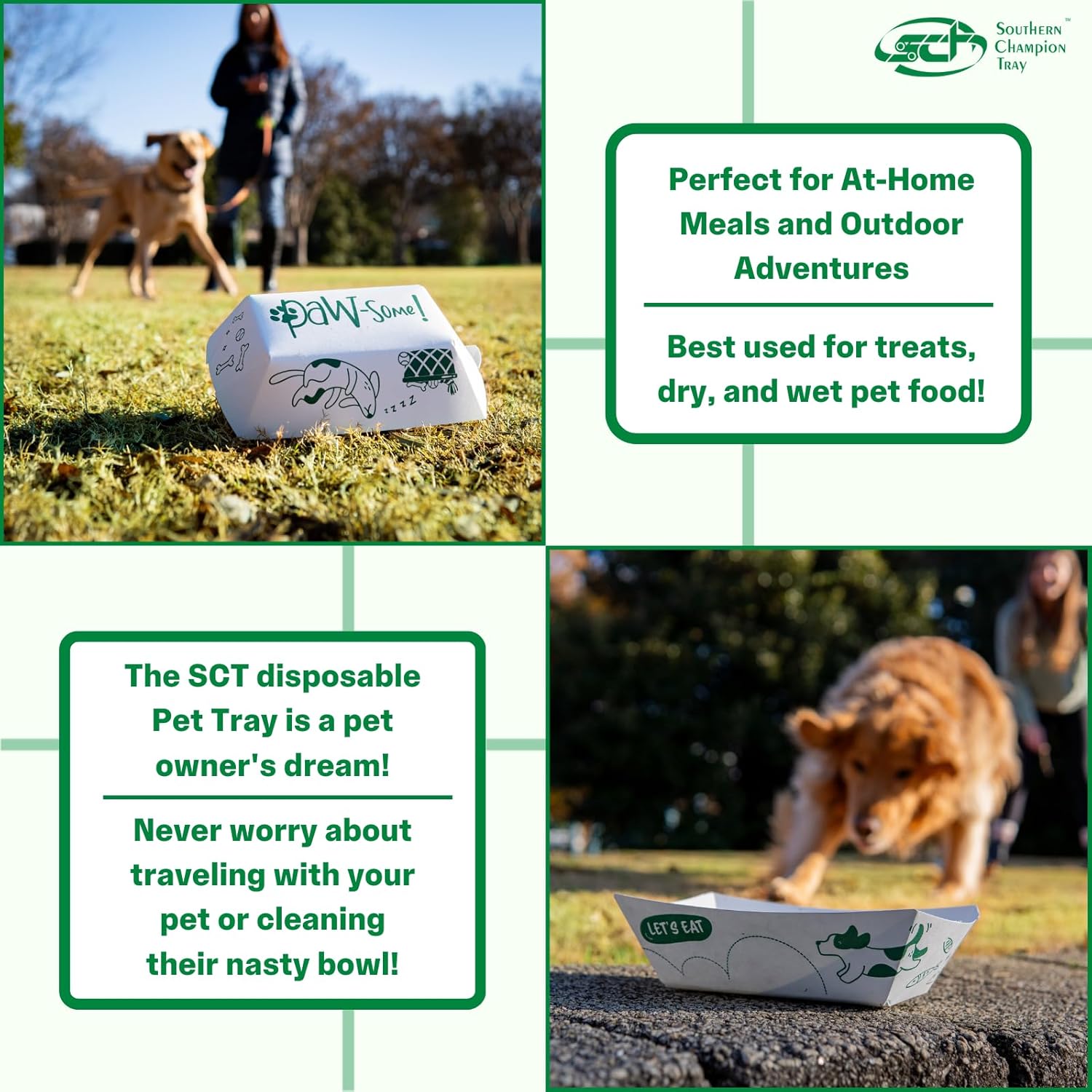 Tired of dealing with dirty, caked-on pet food bowls? Southern Champion Tray’s new disposable pet food trays offer a simple, hassle-free solution for feeding your pet. Ideal for busy pet owners, veterinary clinics, and animal shelters, our disposable pet food bowls, cat food trays, and dog food trays are the perfect choice for a more convenient, on-the-go, sustainable, mess-free pet food tray that keeps mealtime clean and stress-free!