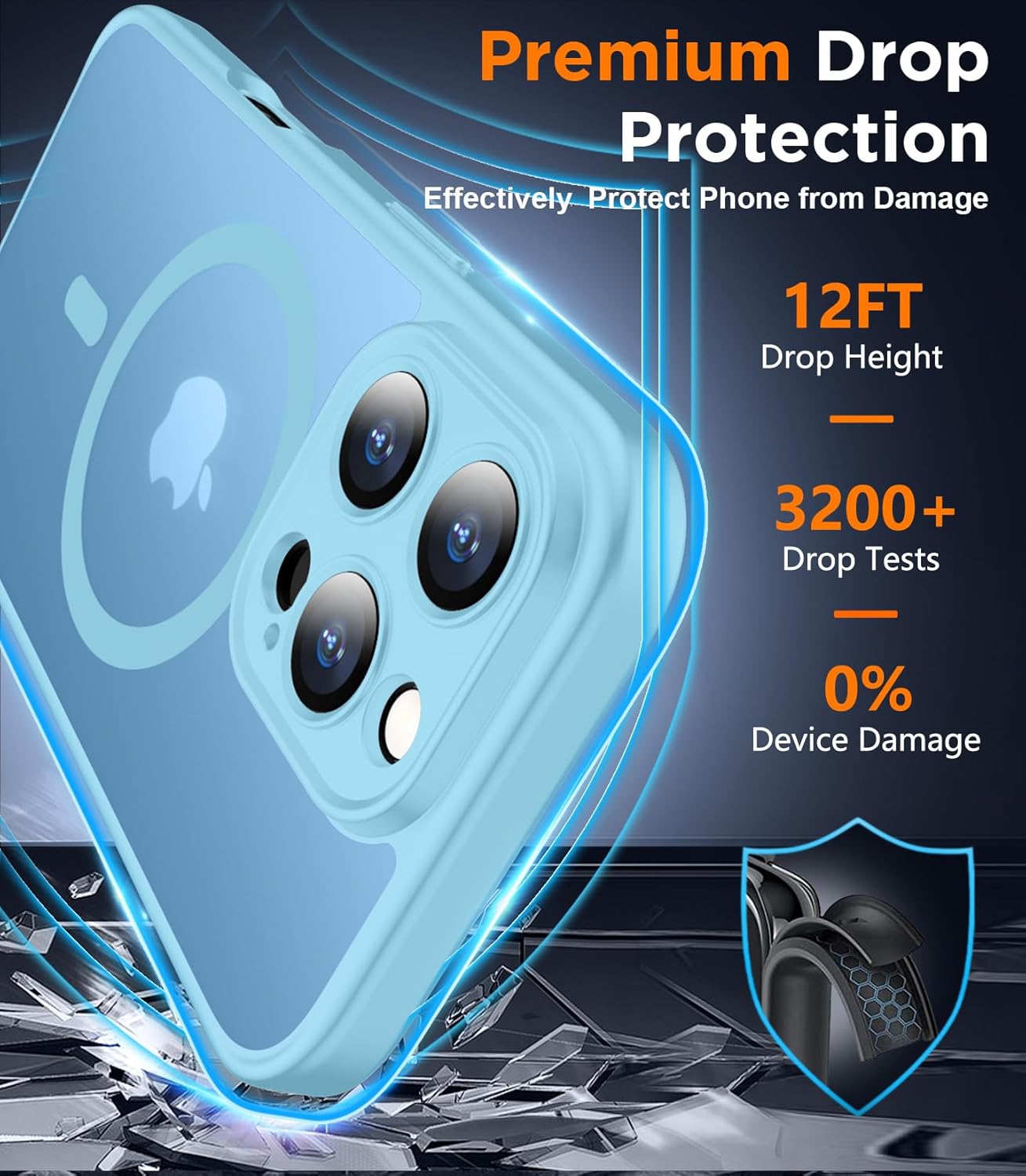 [Thorough Camera & Screen Protection] 1.5mm raised lips over screen and 1.5mm raised lips over camera relieves over this iPhone 16 Pro case, impacts and protects the phone screen and camera against drop damage, cracks and scratches. Reinforced corner effectively absorb bumps from any angle drop.