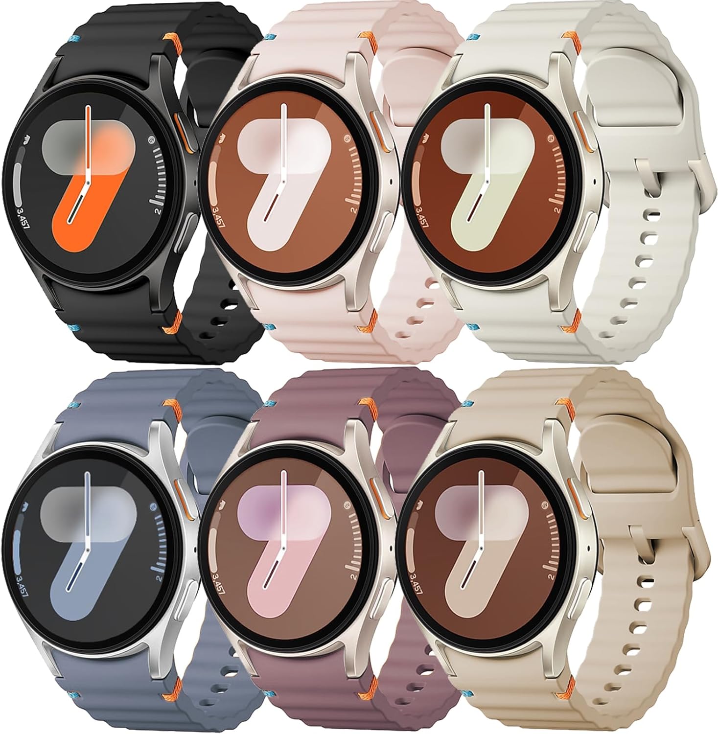 Sport Band for Samsung Galaxy Watch 7 Band 40mm 44mm,No Gap Soft Silicone Strap for Galaxy Watch 6 5 4 FE Band 40mm 44mm/Galaxy Watch 6/4 Classic 47mm 43mm 46mm 42mm/Watch 5 pro 45mm Men Women,6 Pack