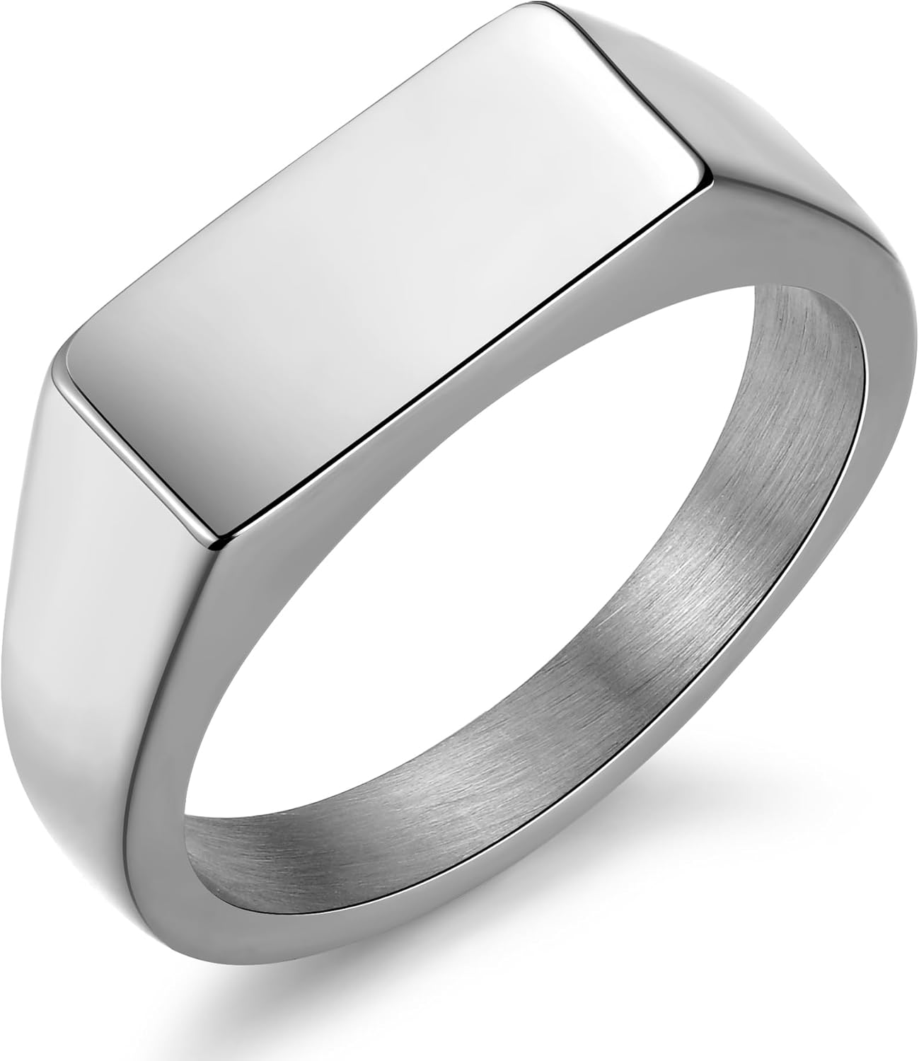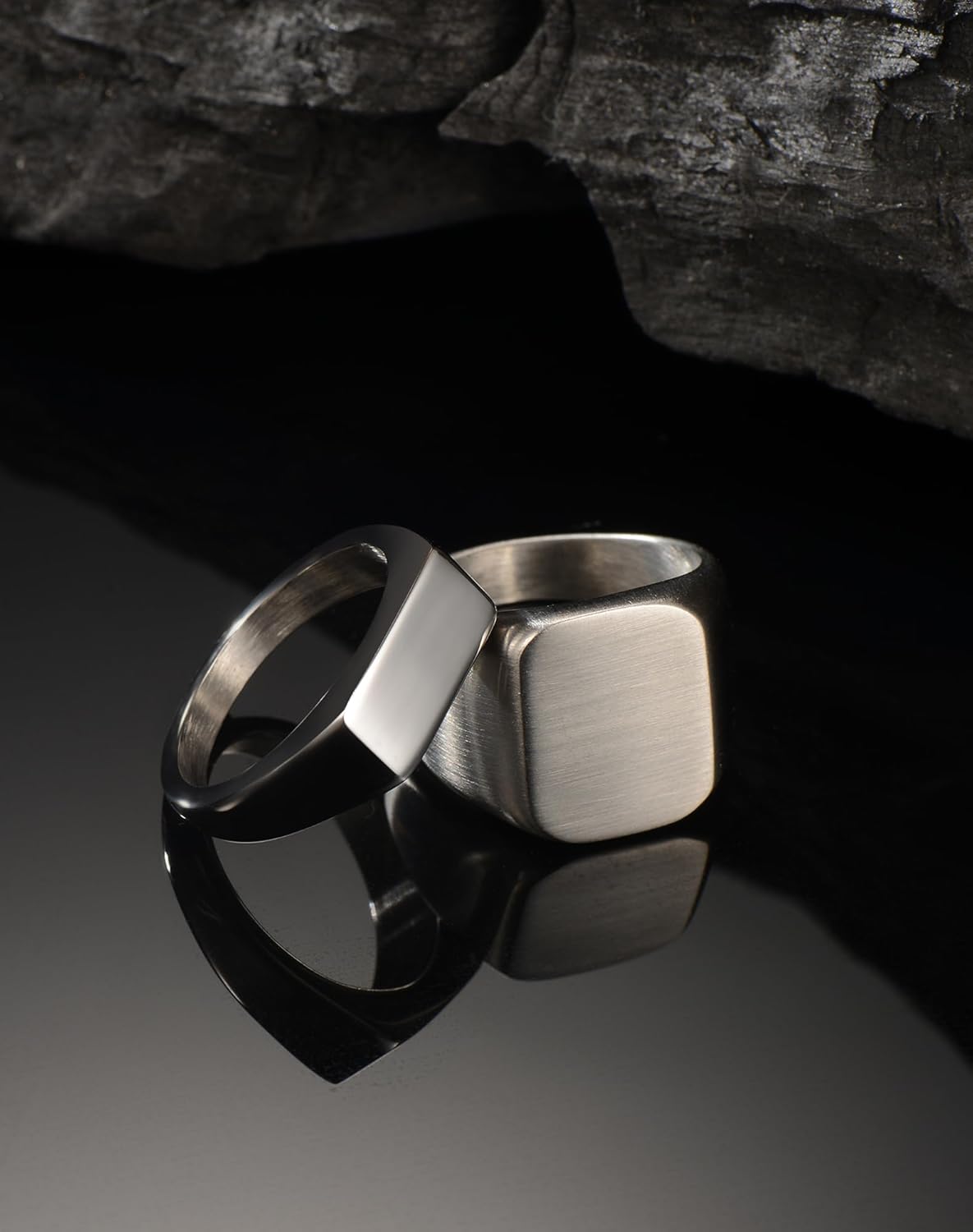 Stainless Steel Signet Ring – 316L Mens Finger Ring for Men Women – Rhodium Plated Cool Band Ring Jewelry for Father Husband Son Friend