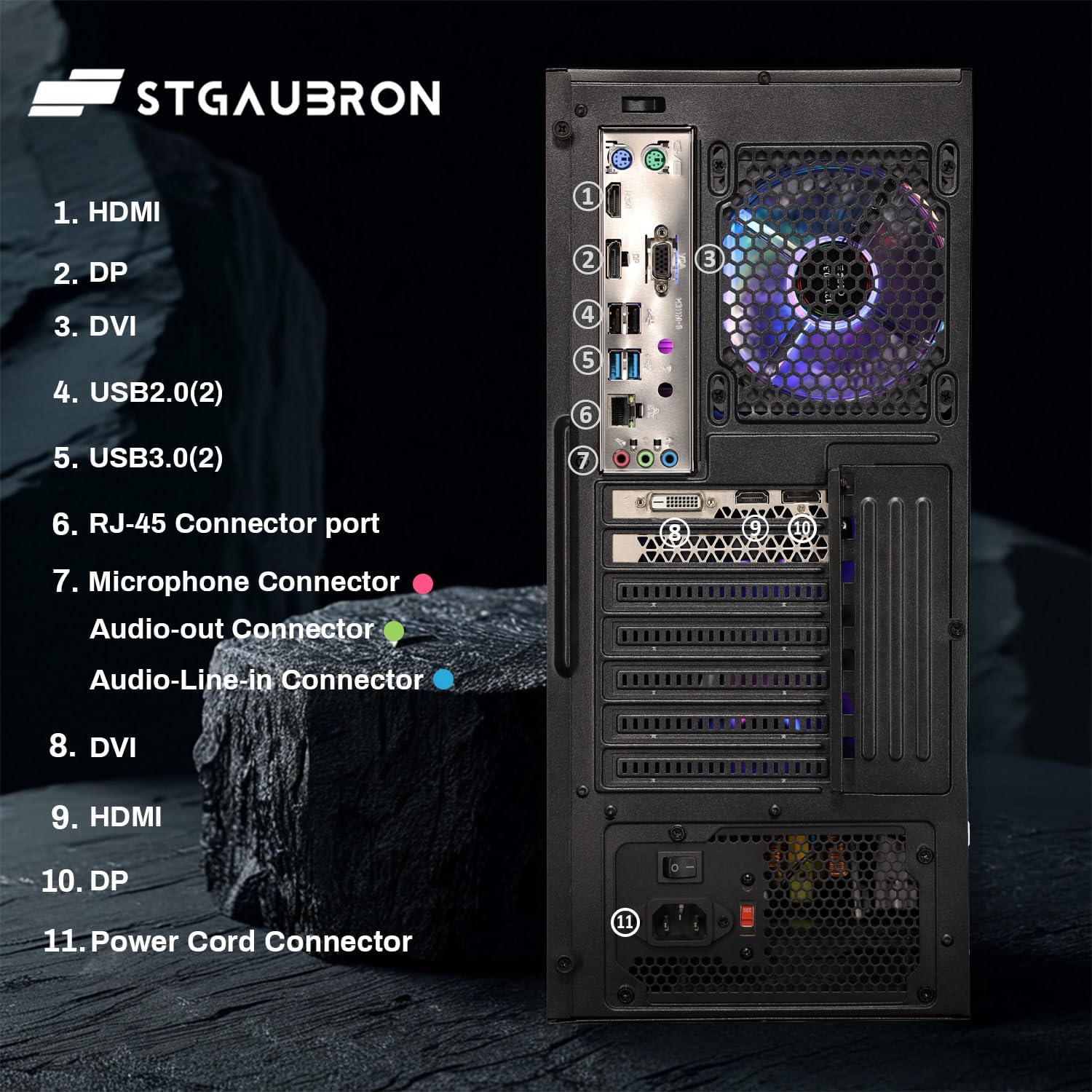 STGAubron Gaming PC Computer Desktop, Radeon RX 580 8G, Intel Core I7 8th up to 4.1GHz, 16G DDR4, 1T SSD, WiFi 6 & BT 5.2, RGB Fan x4, Windows 11 Home