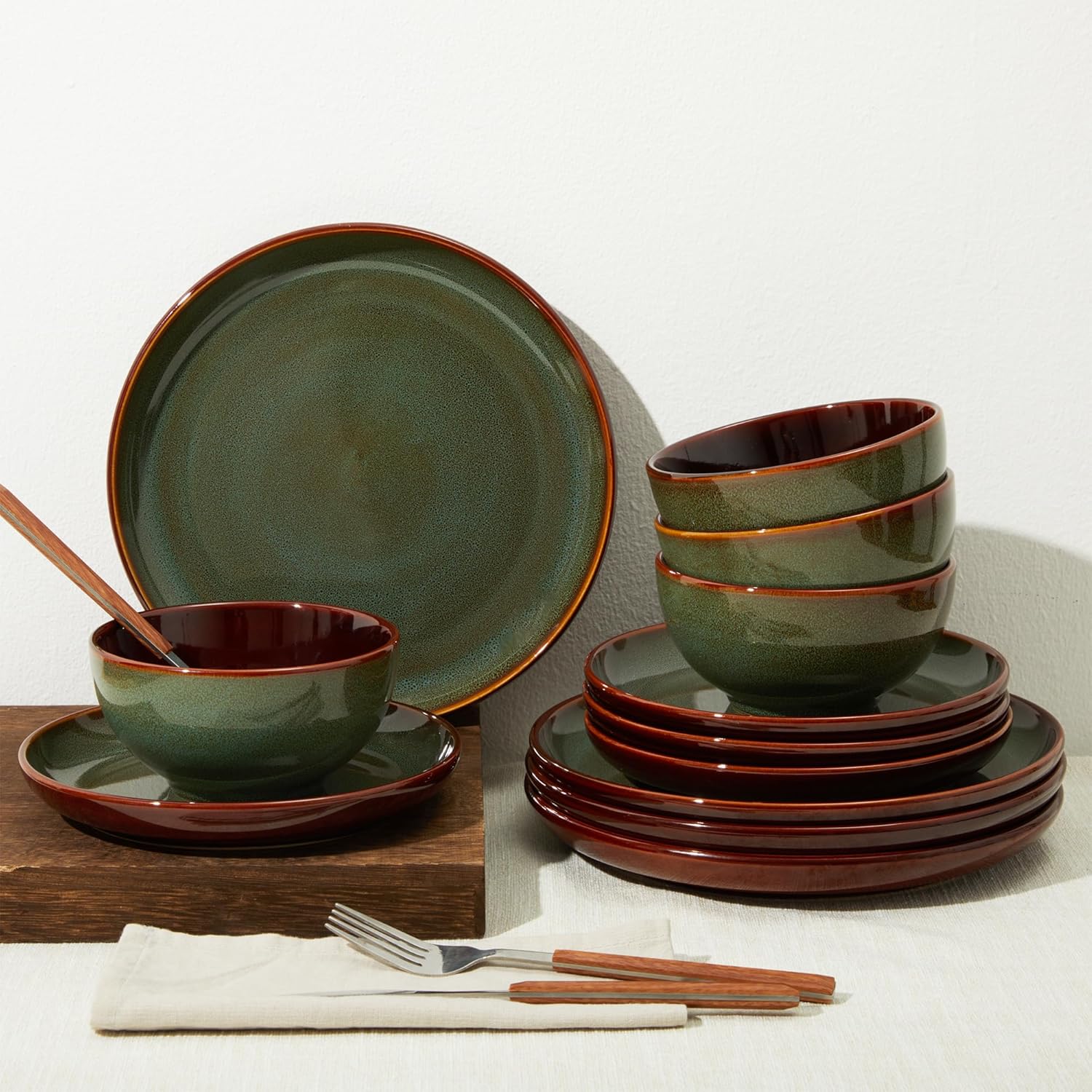 Unique Reactive Glaze for a Distinctive Look: Crafted with a special reactive glaze, each piece in this 12-piece dinnerware set boasts unique colors and textures. The high-temperature firing process results in beautiful, one-of-a-kind patterns, making every meal an artful experience and turning your dining table into a showcase of craftsmanship