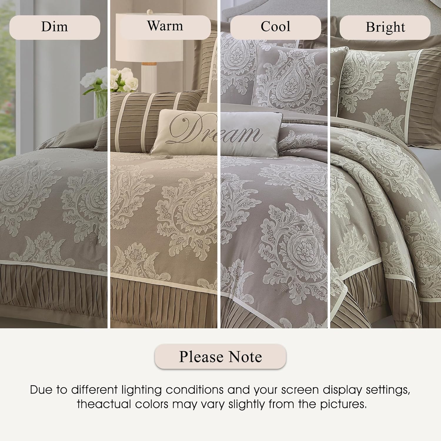 [Exquisite And Exclusive Design] Add a touch of class to your bedroom with the comforter set. The luxurious comforter and shams flaunt a gorgeous medallion design in ivory on the satin taupe ground color that add dimension to the lavish look.