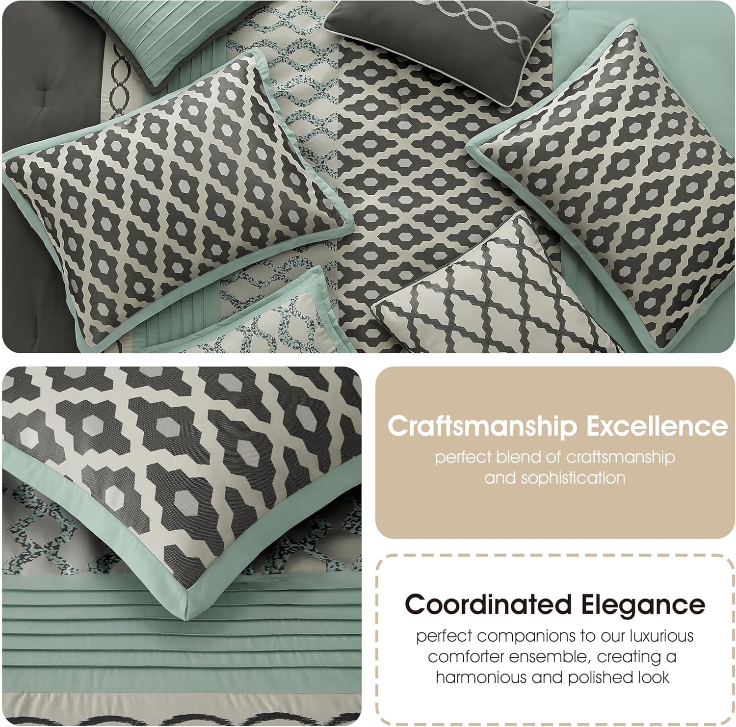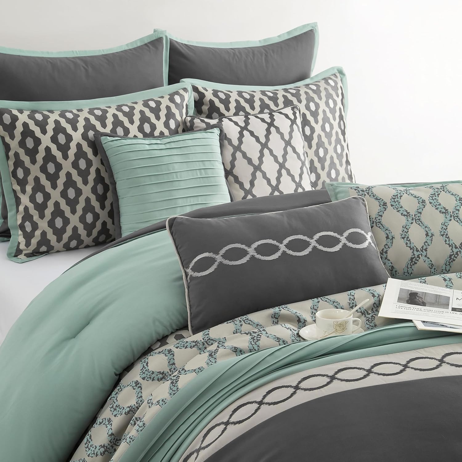 [Features] Made of 100-percent polyester fibers that are conveniently machine washable and superbly handsome, this set features a mix of geometric pattern jacquard with an accented solid with pintuck. Let this exceptionally stylish bedding set breathe new life into your bedroom.