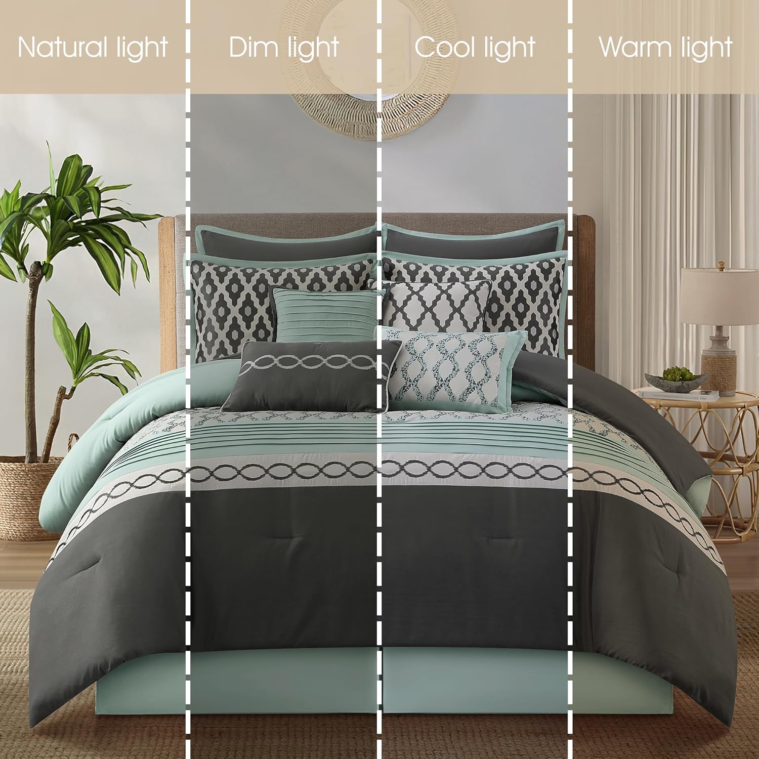 Stratford Park Geometirc Queen Blue Grey Comforter Set, 10 Piece, Jacquard Bedding Comforters & Sets, Bedskirt, Pillows & Shams,
