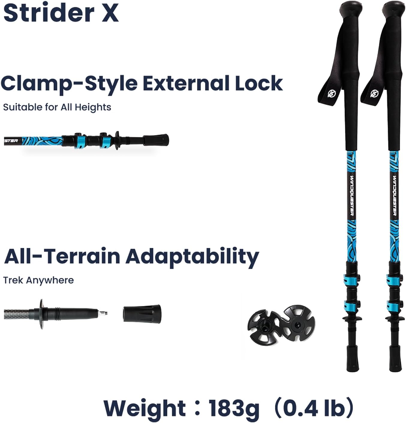 Strider X Carbon Fiber Trekking Poles – Adjustable Lightweight Hiking Poles with Quick Lock, Compact for Backpacking, Camping & Travel – Glacial Wave