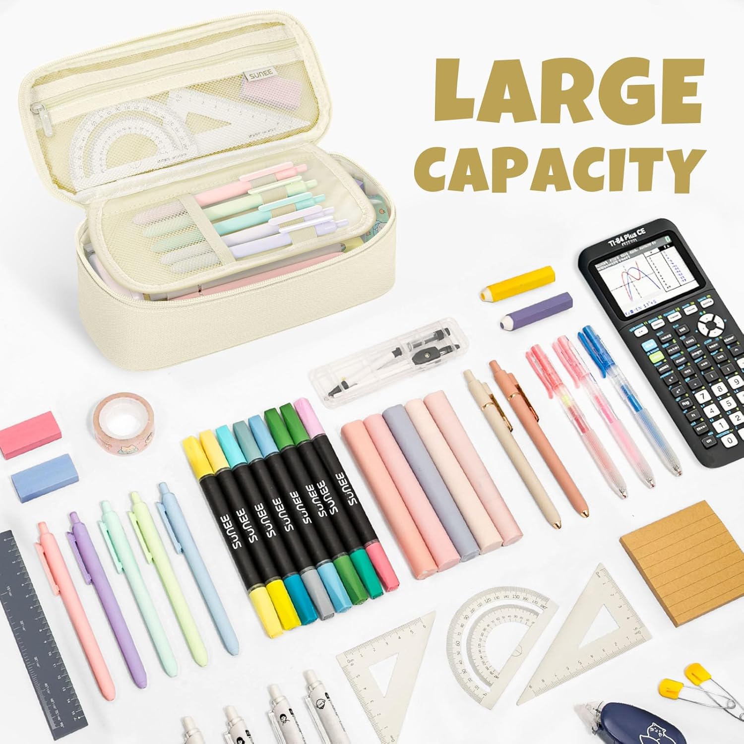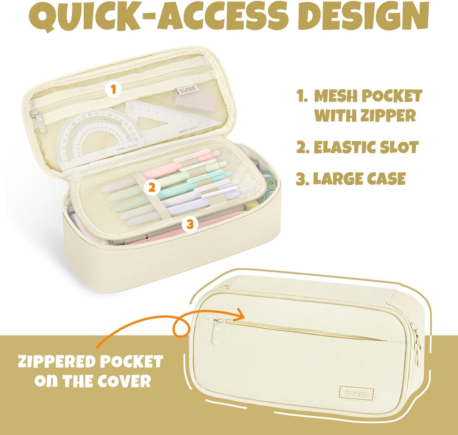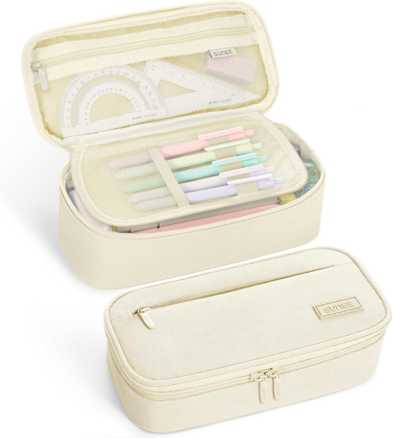 SUNEE Cute Pencil Case, Large Capacity Pencil Pouch, 900D Oxford Big Storage Office Organizer for Stationery, Zipper Pen Bag Makeup Bag, Back to School Supplies for Teen Girls Boys Women Men, Beige