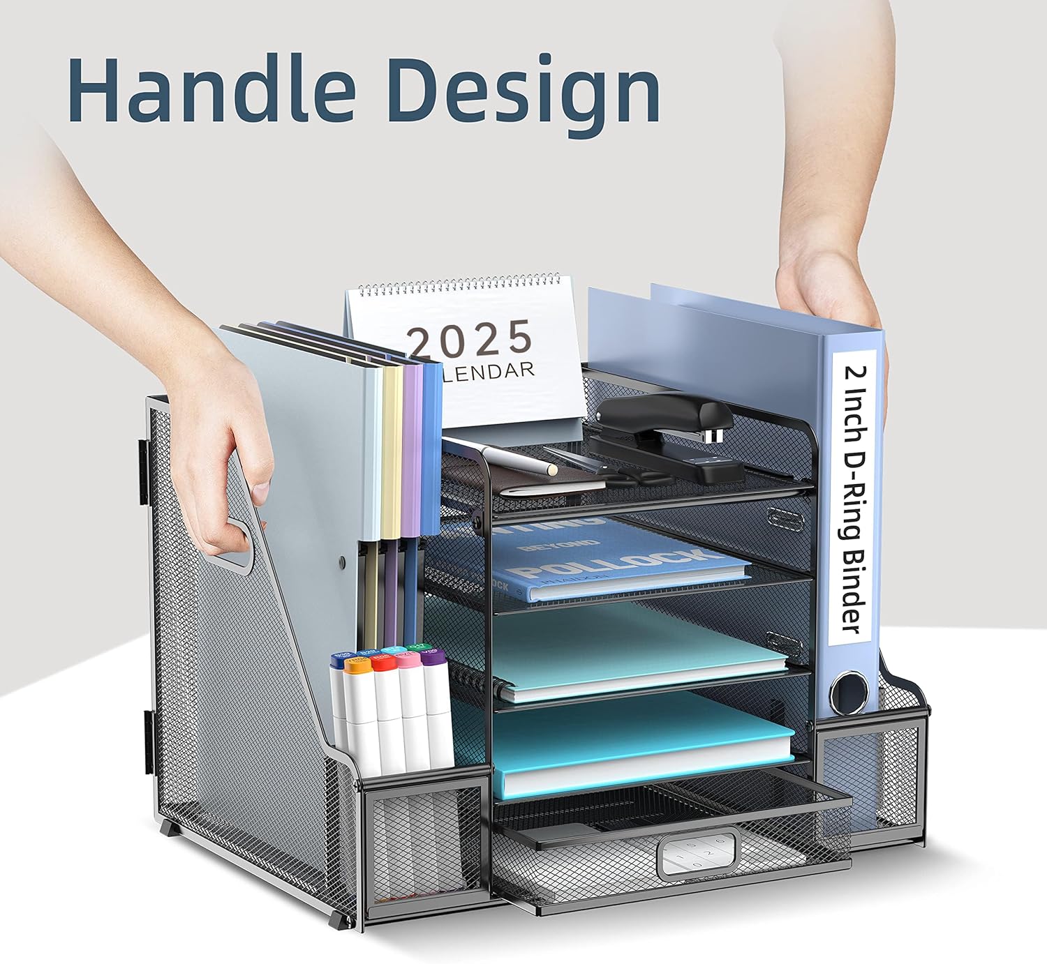 [Handle Design] The desktop file organizer adopts a handle design, which can easily move the entire product to any position, which is convenient and labor-saving.