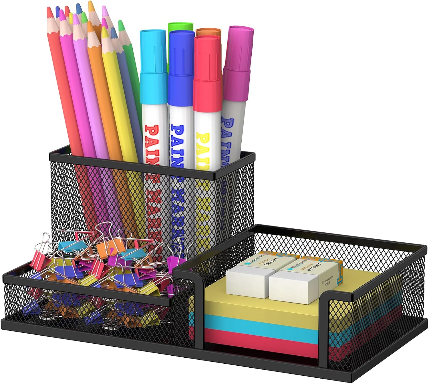 SUPEASY mesh pen holder organizer includes 3 compartments,it ensures that your desk remains uncluttered and easy to manage, allowing you to focus on your work without getting distracted by a messy desk. It truly is a fantastic tool for maintaining a tidy and productive workspace!