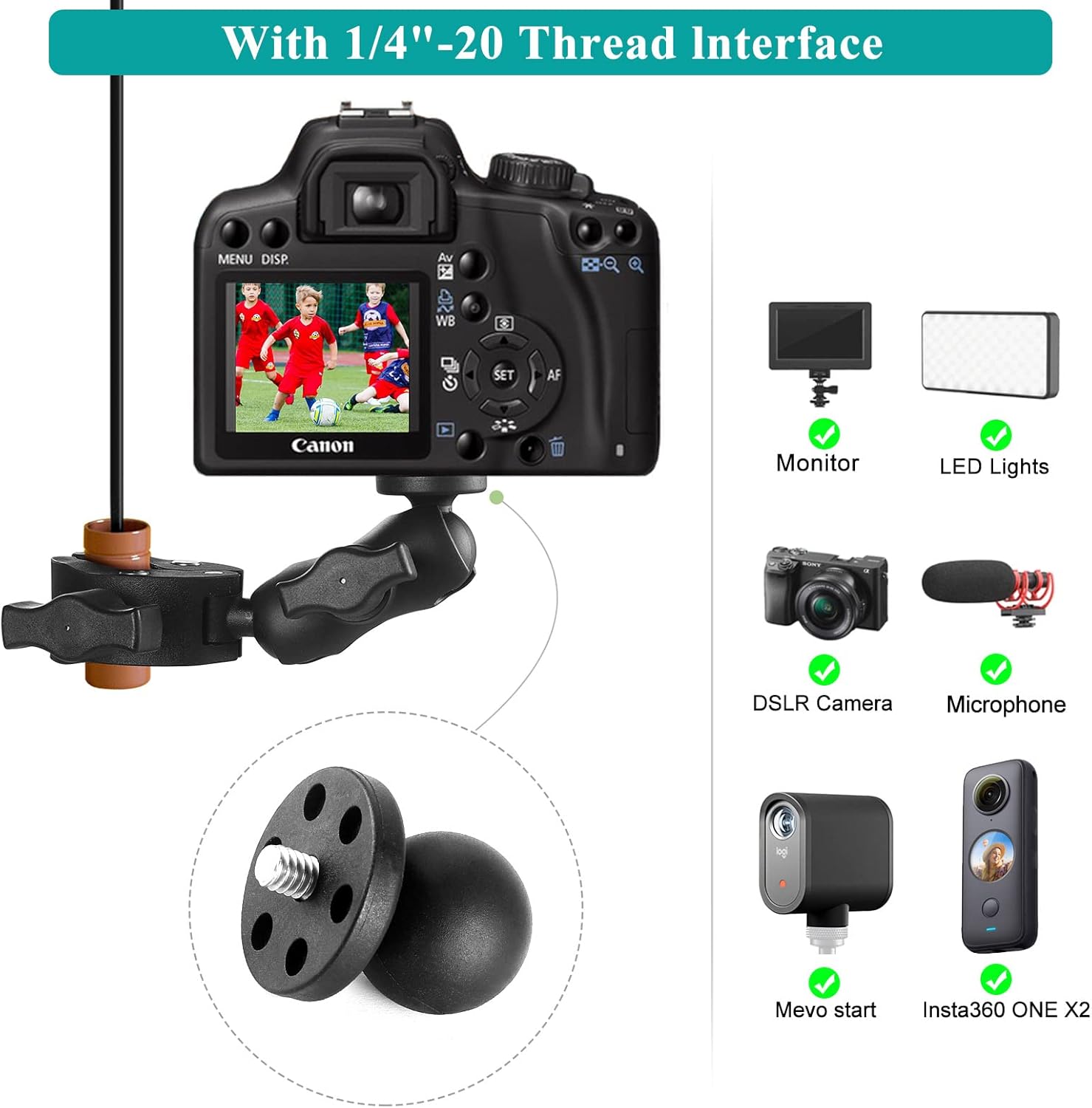 for GoPro Series/ AKASO/ DJI Action/ YI Action Camera/ Canon Nikon DSLR Camera/ Mevo Start/ LED Lights/ Monitor/ Microphone