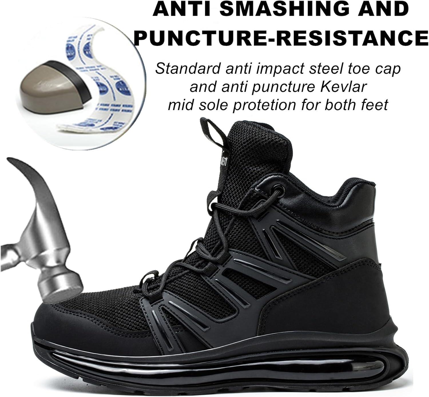 SYLPHID Men Steel Toe Sneakers Women Safety Shoes High top Work Shoe with Air Cushion Lightweight Breathable Puncture Proof