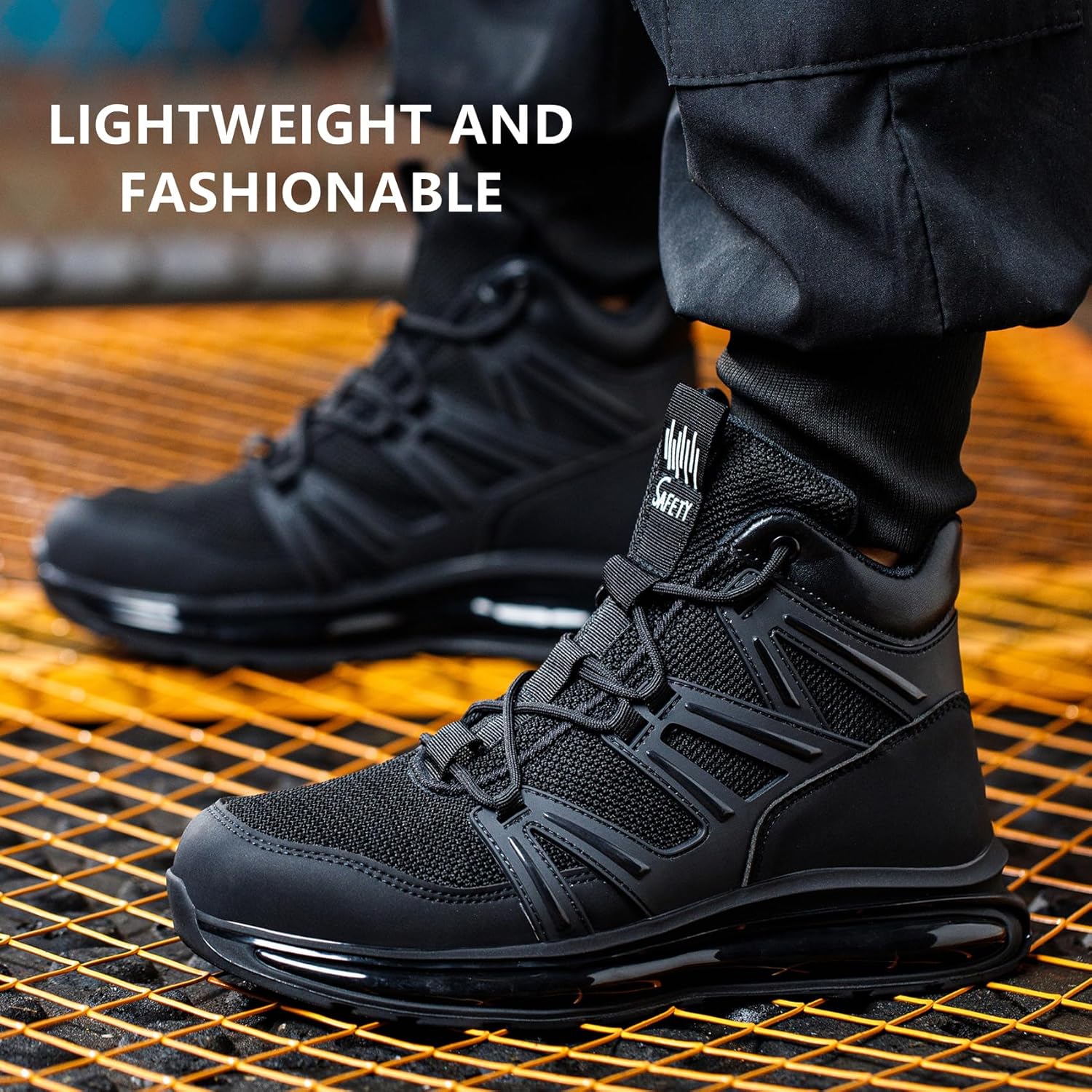 Newly upgraded process ensures that the shoes will not degumming.Cushioning technology-Prevents foot fatigue and pain after hard work.Anti-stab midsole-Protects feet from potential hazards.Anti-skid technology-Manufacturing rubber sole.Wear-resistant technology-The shoes can be used for long time.Modern style design-fashion casual,comfortable, integrated with practical design.