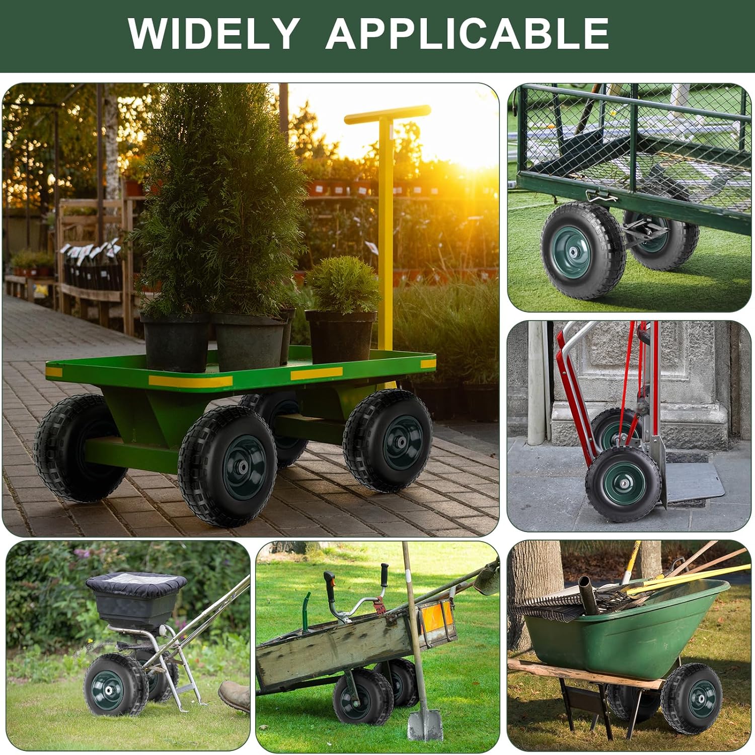 Note & Sincere Service: Please check your old tires for fitment before purchase. These wheels are suitable for dynamic loads, not for static loads, please remove heavy items after using the cart. And it is not applicable to highway. If you have any questions after purchase, please feel free to contact us, we will glad to help you solve it