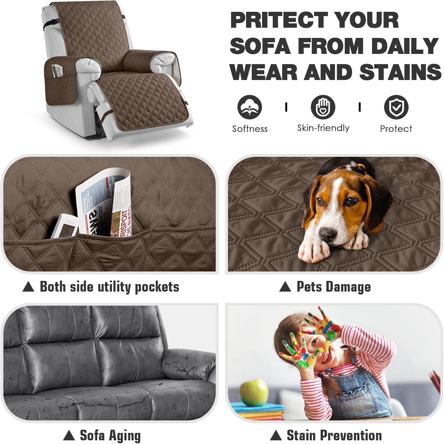 Protect your furniture from daily spills and stains; Ideal for pets and kids.