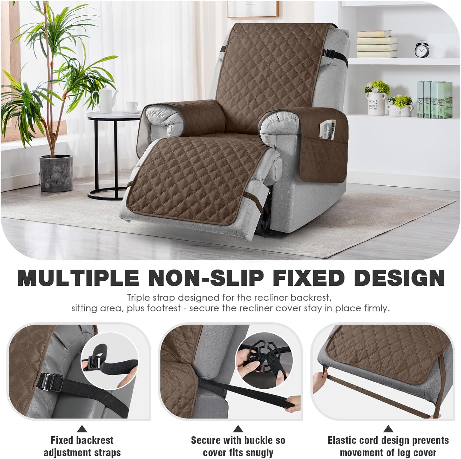 Triple strap designe ensures the recliner cover stays firmly in place.