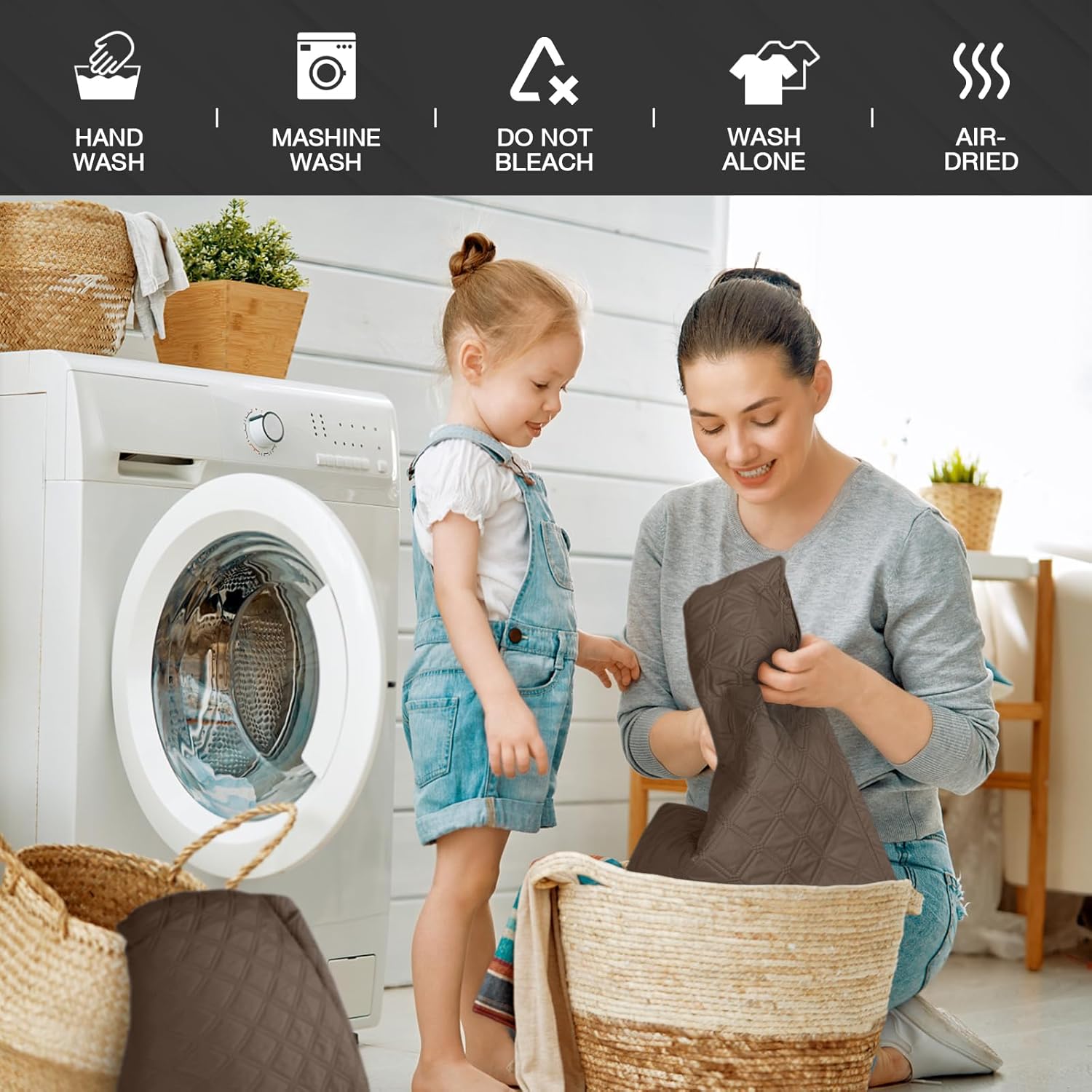 【EASY TO INSTALL & EASY CARE】 Machine or hand washable, wash at a temperature around 30 degrees Celsius, mild laundry detergent advice. Do not bleach. Do not iron