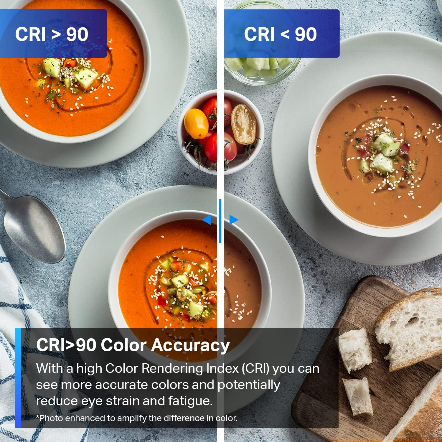 【Superior Lighting Performance】Enjoy a truly superior lighting performance with these a 220° beam angle for wider coverage, a color rendering index (CRI) > 90 for truly vibrant colors, and a luminous 800LM brightness level. Fully dim the lights from 1%-100% to match the mood anytime of day.