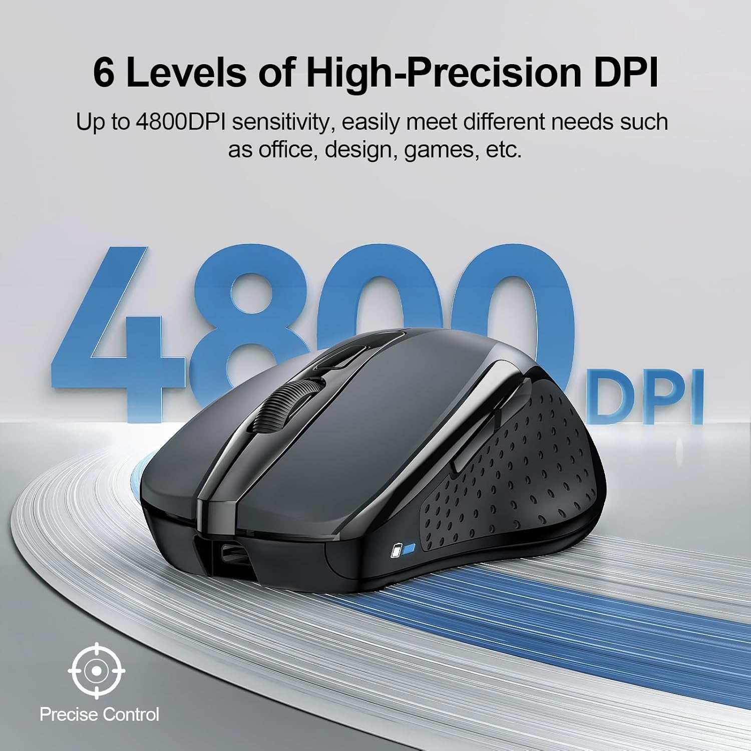 6 Adjustable Level: This computer mouse offers 6 adjustable DPI levels (4800/3200/2400/1600/1200/800), allowing you to easily customize DPI to suit your preferences. Whether you need precise control for detailed work or swift movement for browsing, this wireless mouse for laptop has you covered.