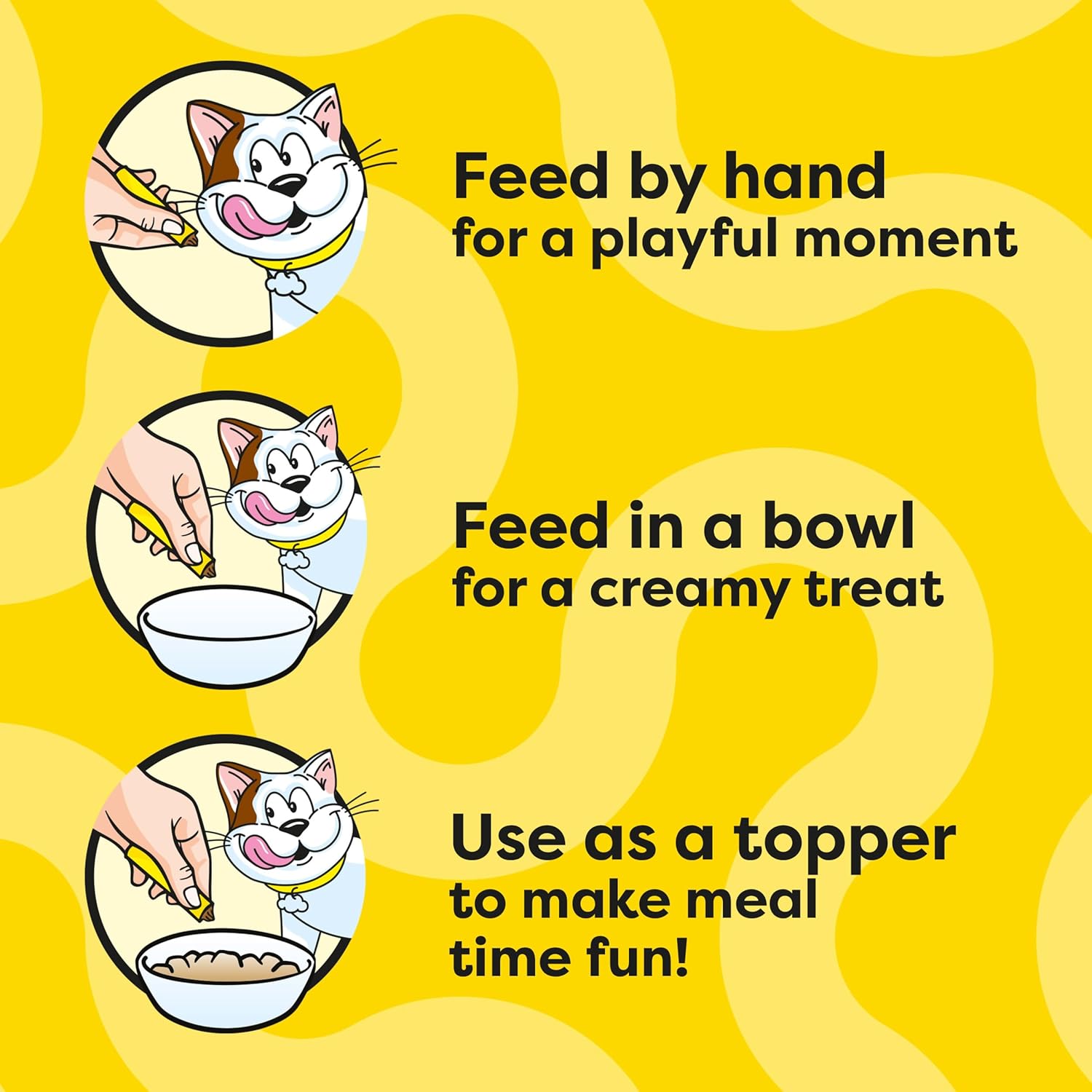 Versatile Feeding Experience: Feed these Temptations Puree Cat Treats by hand for an interactive bonding experience, treat on its own in a dish for an irresistible treat, or use as a delicious meal topper