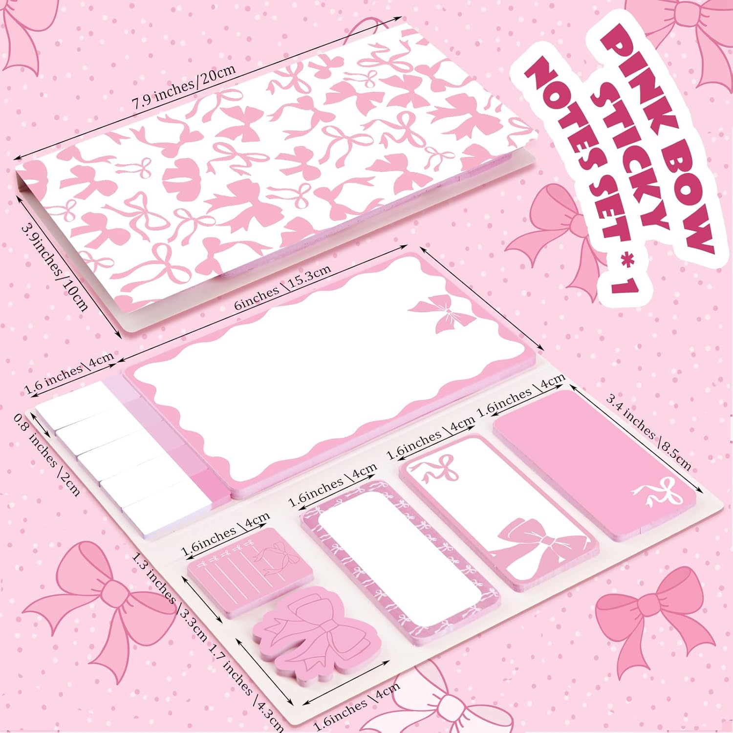 With a generous package including 11 styles pink bow sticky notes and 43 pages per note. These pink bow themed notes offer many choices for every occasion, ensuring you are prepared with ample supply.