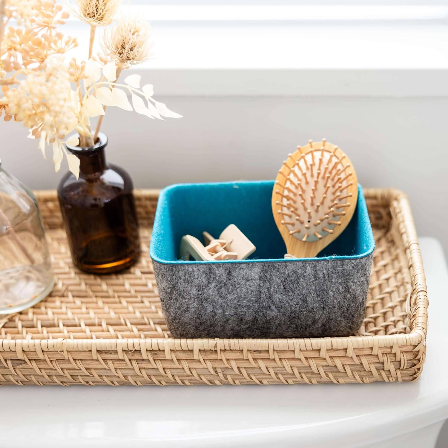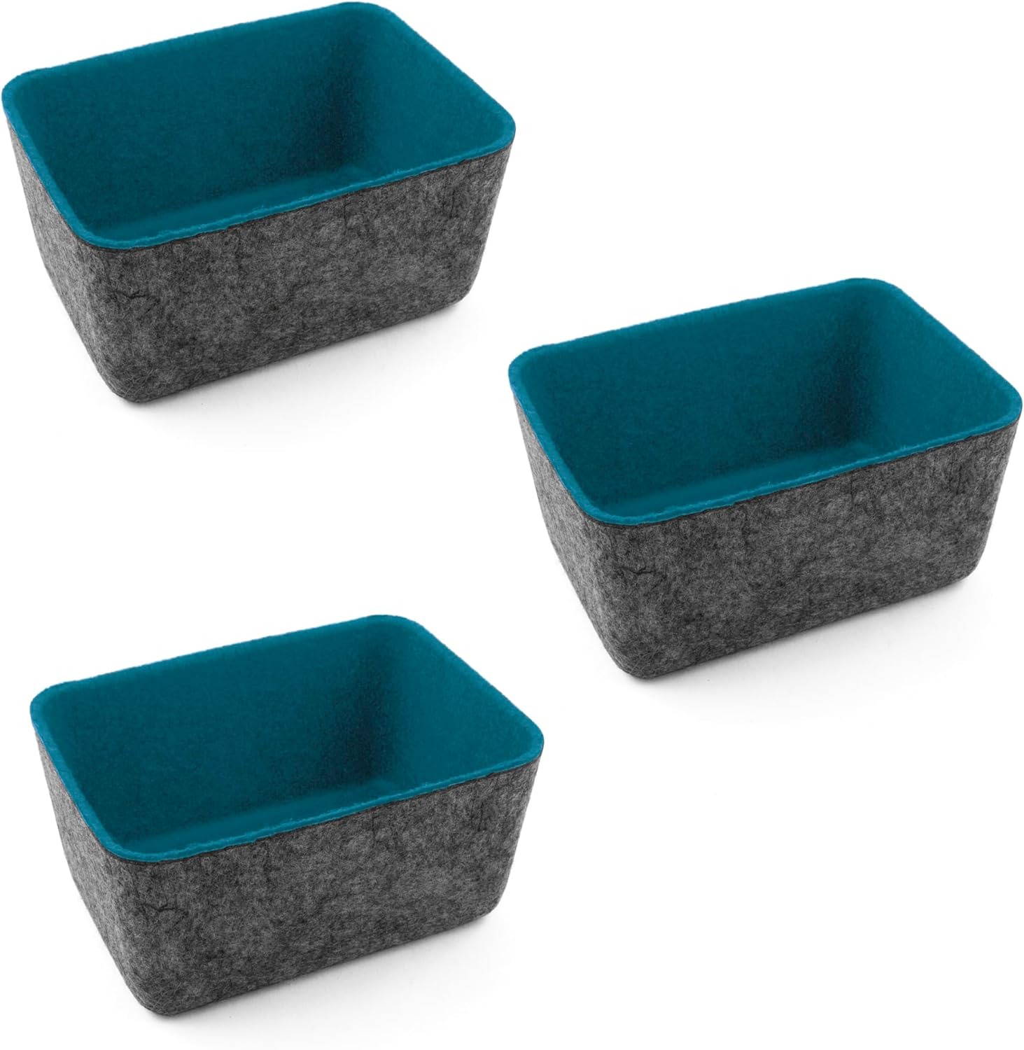 Dimensions: 6 x 4 x 2.75 inches (15 x 10 x 7 cm). Despite their soft feel, these felt bins maintain their shape and strength over time, ensuring reliable storage.