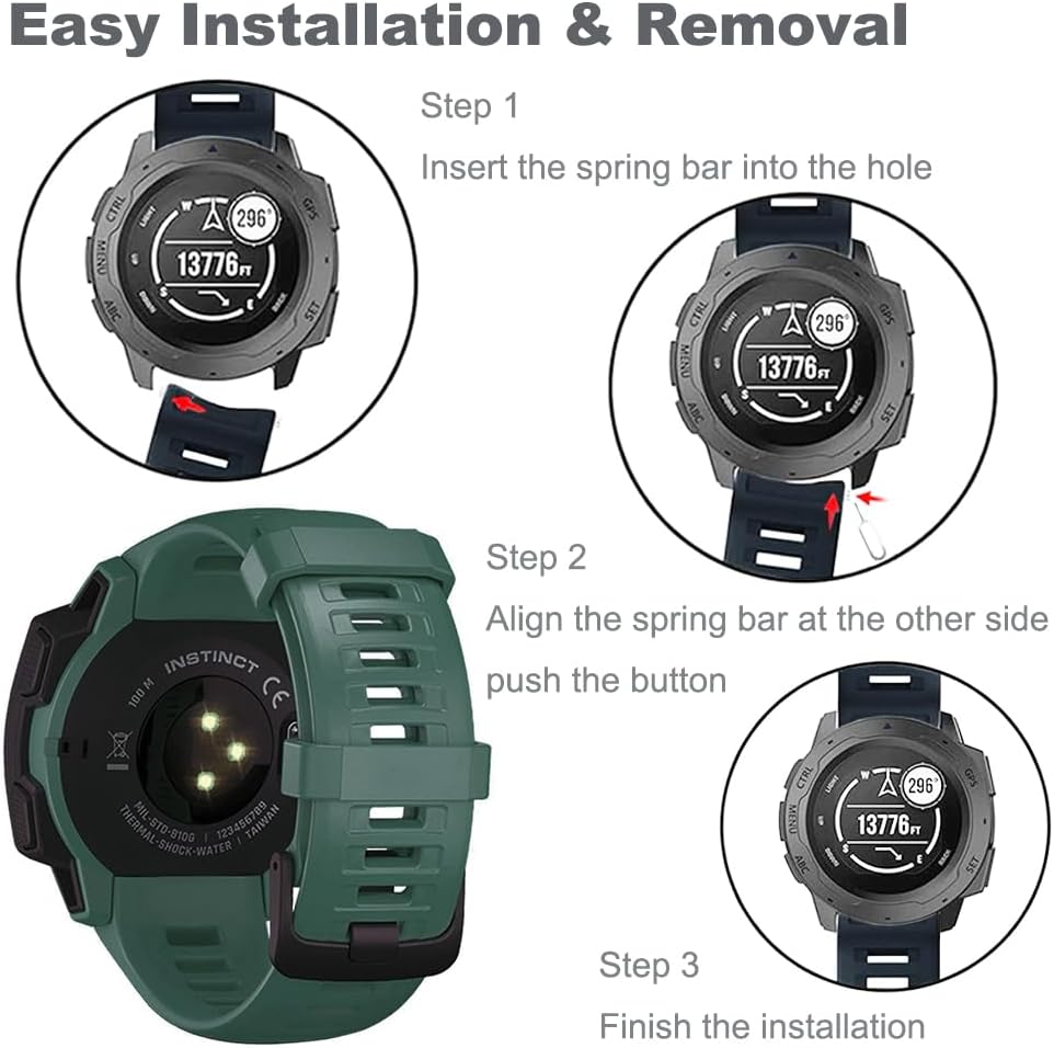 Band can be locked onto Garmin Instinct 2 Watch Band Interface precisely and securely.Comfortable and durable, Soft silicone with smooth finish for a sporty look. Easy to install and remove. Stainless steel buckle clasp for closure.