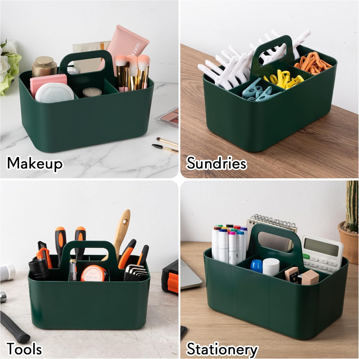 Perfect Size: Our plastic caddy has up to five compartments with one removable divider. Dimensions: 9-7/8″x6-1/8″x4-3/8″. Suitable for all your different usage. Great help to organize your cleaning products, kitchen tools, medical suppliers, cosmetics, lotions, art and craft suppliers, toys, markers, crayons and fabric. With the removable divider, you can create more usage with different capacity.