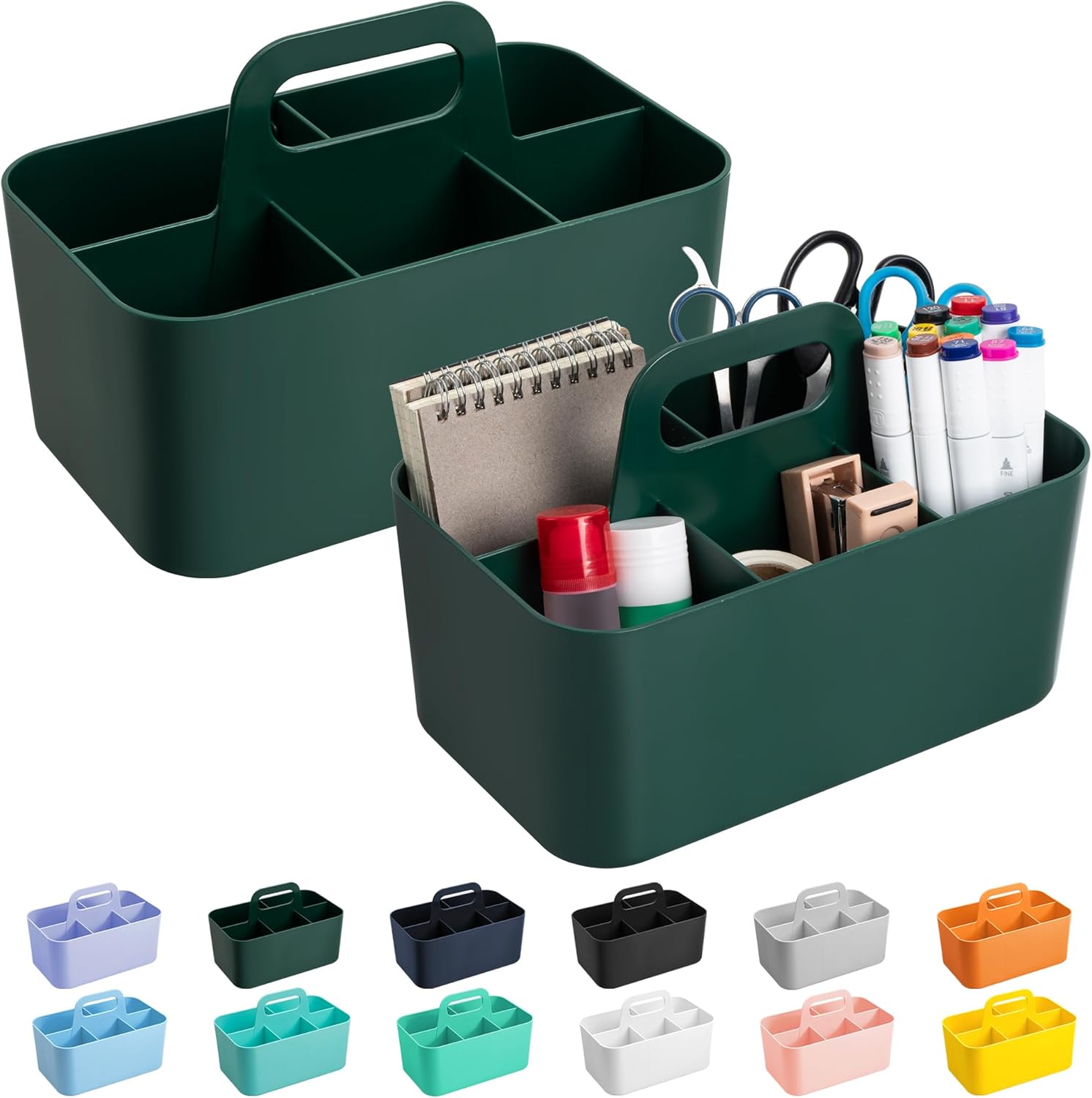 Tiawudi 2 Pack Caddy Organizer with Handle, Portable Plastic Caddy, Storage Organization for Cleaning, Bath, Makeup, Art, Craft, Stationery, Classroom and Office, Tote Organizer